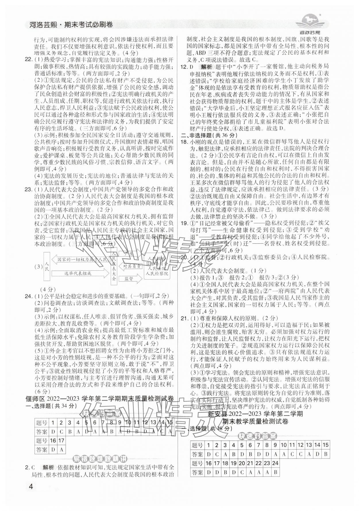 注:目前有些书本章节名称可能整理的还不是很完善,但都是按照顺序排列的,请同学们按照顺序仔细查找。练习册 2024年期末考试必刷卷八年级道德与法治下册人教版洛阳专版 答案主要是用来给同学们做完题方便对答案用的,请勿直接抄袭。