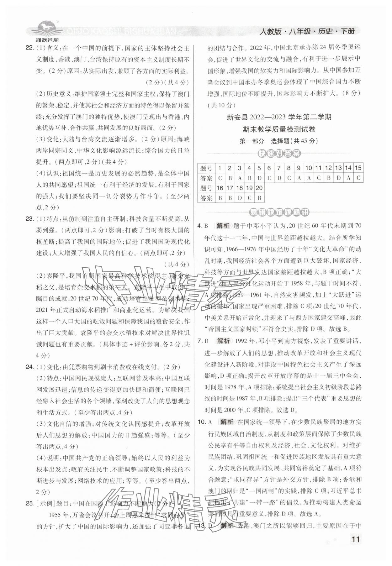 注:目前有些书本章节名称可能整理的还不是很完善,但都是按照顺序排列的,请同学们按照顺序仔细查找。练习册 2024年期末考试必刷卷八年级历史下册人教版洛阳专版 答案主要是用来给同学们做完题方便对答案用的,请勿直接抄袭。