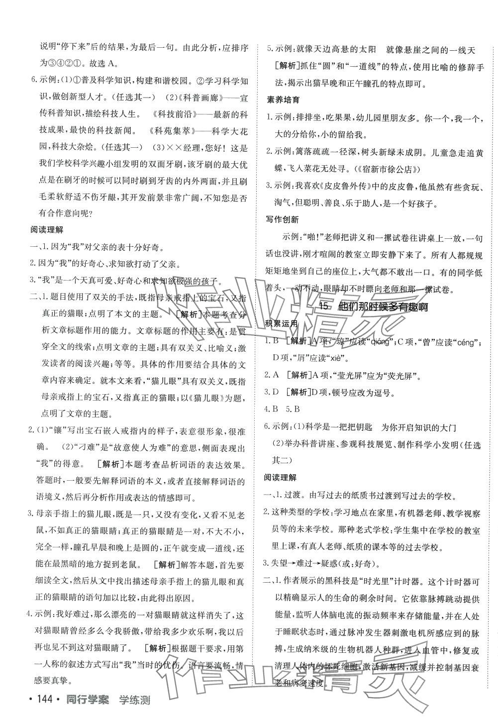 注:目前有些书本章节名称可能整理的还不是很完善,但都是按照顺序排列的,请同学们按照顺序仔细查找。练习册 2024年同行学案六年级语文下册人教版五四制 答案主要是用来给同学们做完题方便对答案用的,请勿直接抄袭。