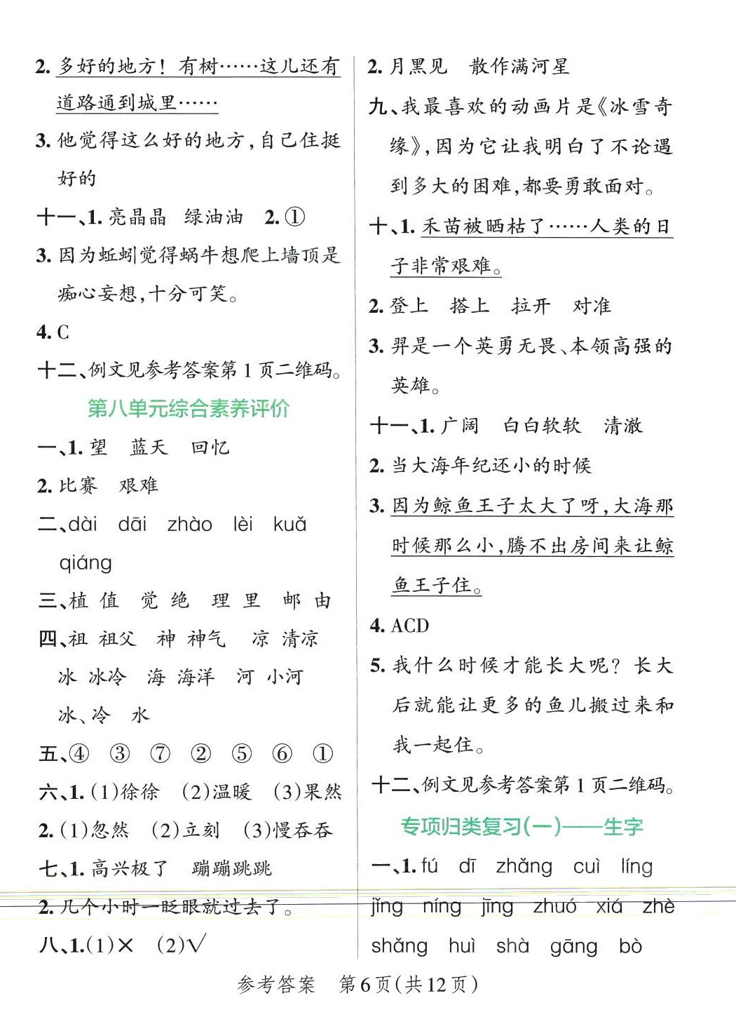 注:目前有些书本章节名称可能整理的还不是很完善,但都是按照顺序排列的,请同学们按照顺序仔细查找。练习册 2024年小学学霸单元期末标准卷二年级语文下册人教版 答案主要是用来给同学们做完题方便对答案用的,请勿直接抄袭。