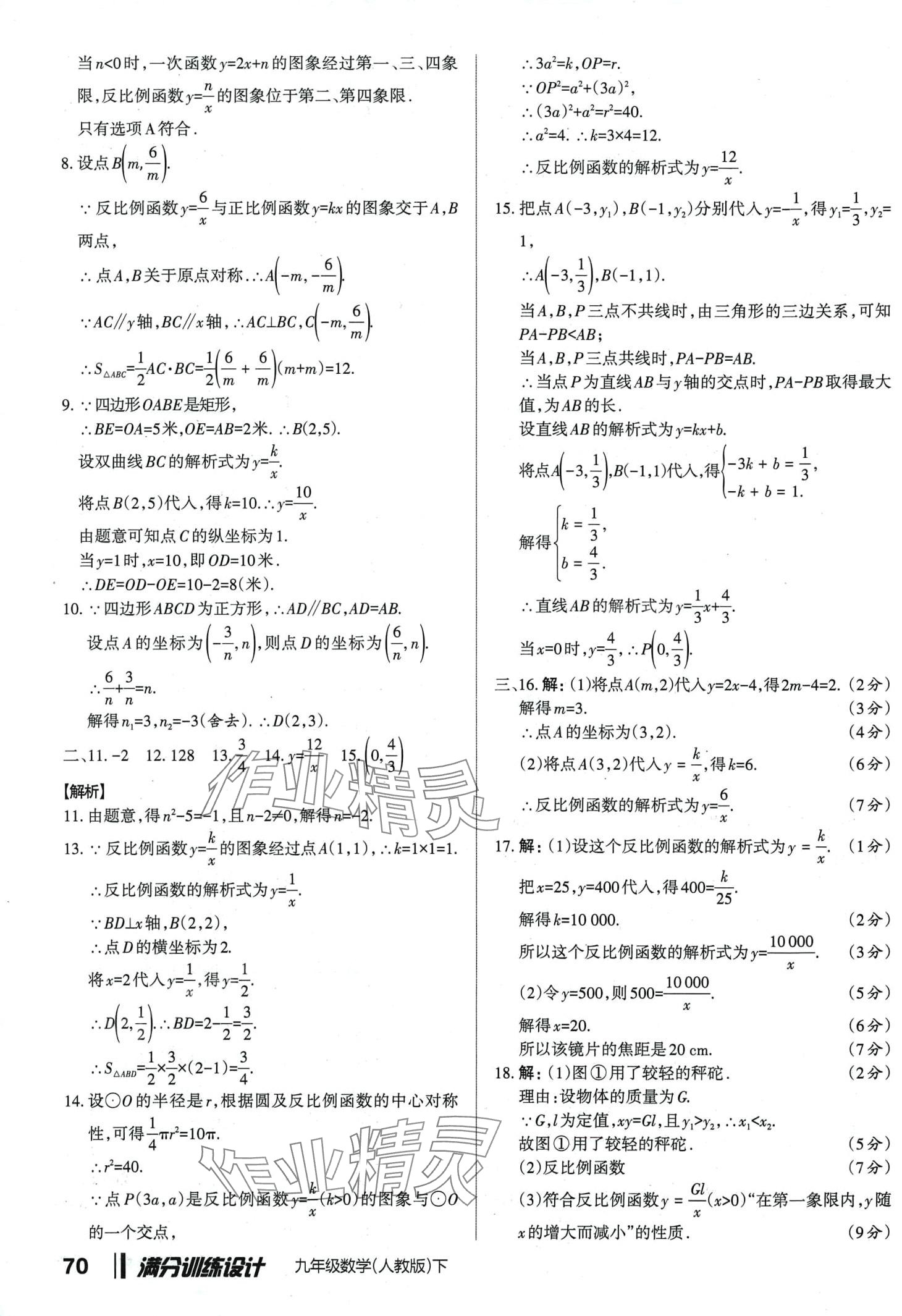 注:目前有些书本章节名称可能整理的还不是很完善,但都是按照顺序排列的,请同学们按照顺序仔细查找。练习册 2024年满分训练设计九年级数学下册人教版山西专版 答案主要是用来给同学们做完题方便对答案用的,请勿直接抄袭。