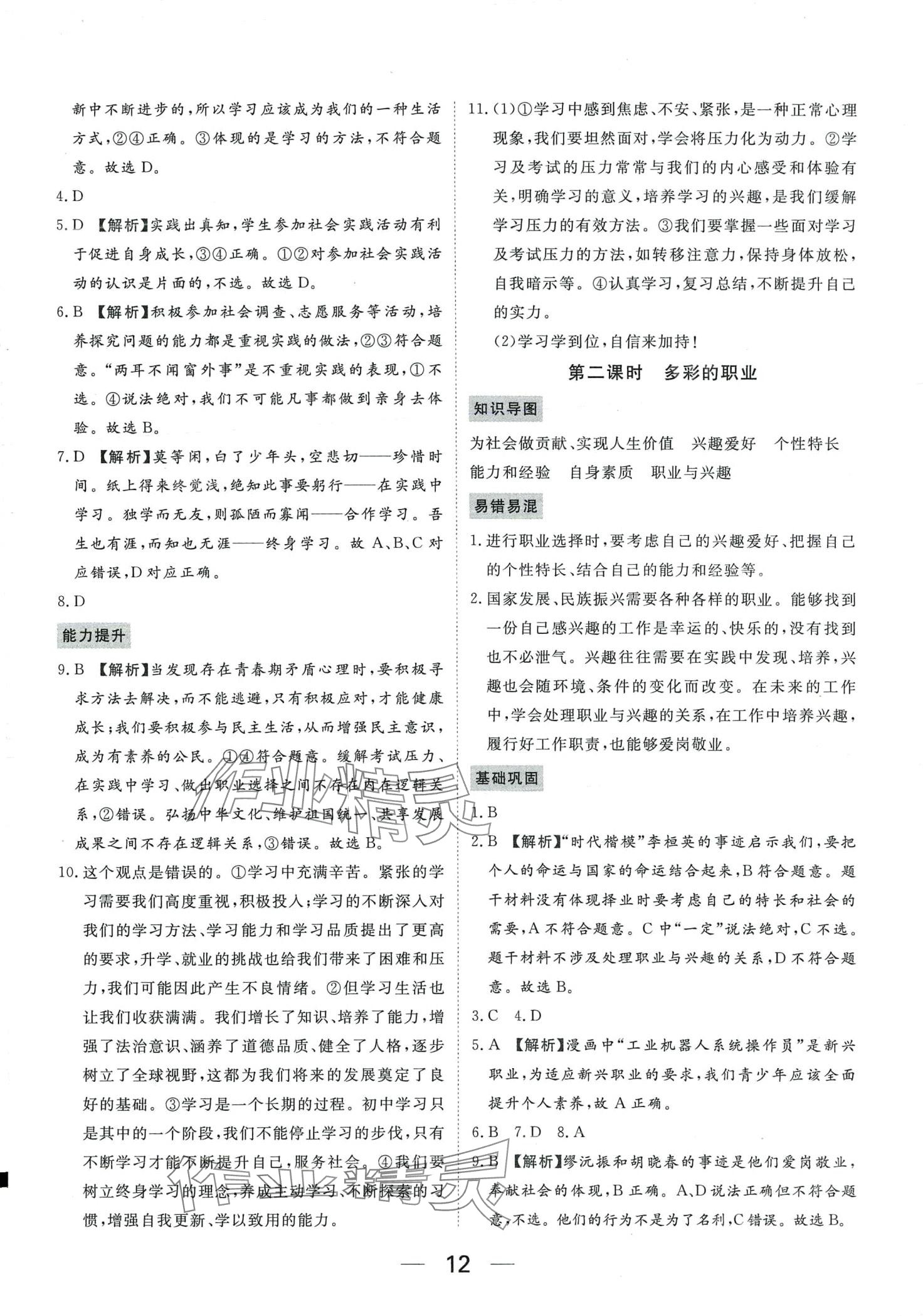 注:目前有些书本章节名称可能整理的还不是很完善,但都是按照顺序排列的,请同学们按照顺序仔细查找。练习册 2024年我的作业九年级道德与法治下册人教版河南专版 答案主要是用来给同学们做完题方便对答案用的,请勿直接抄袭。