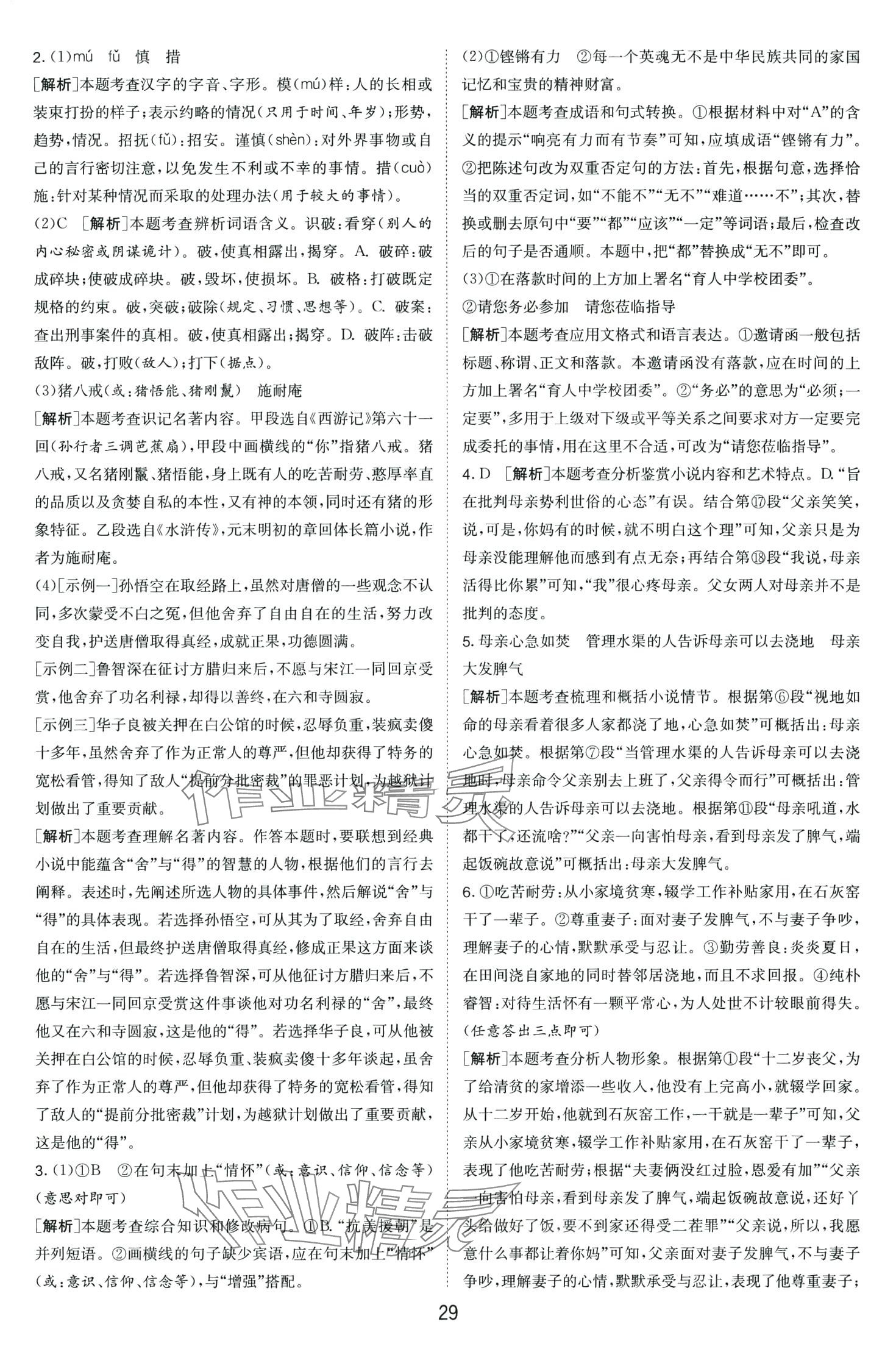 注:目前有些书本章节名称可能整理的还不是很完善,但都是按照顺序排列的,请同学们按照顺序仔细查找。练习册 2024年春雨教育考必胜中考试卷精选语文中考安徽专版 答案主要是用来给同学们做完题方便对答案用的,请勿直接抄袭。