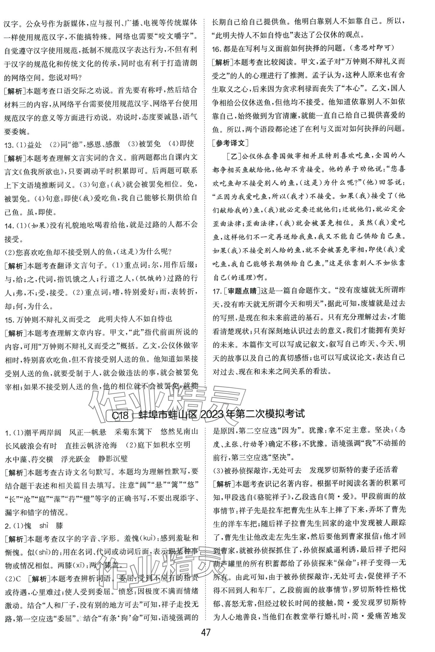 注:目前有些书本章节名称可能整理的还不是很完善,但都是按照顺序排列的,请同学们按照顺序仔细查找。练习册 2024年春雨教育考必胜中考试卷精选语文中考安徽专版 答案主要是用来给同学们做完题方便对答案用的,请勿直接抄袭。