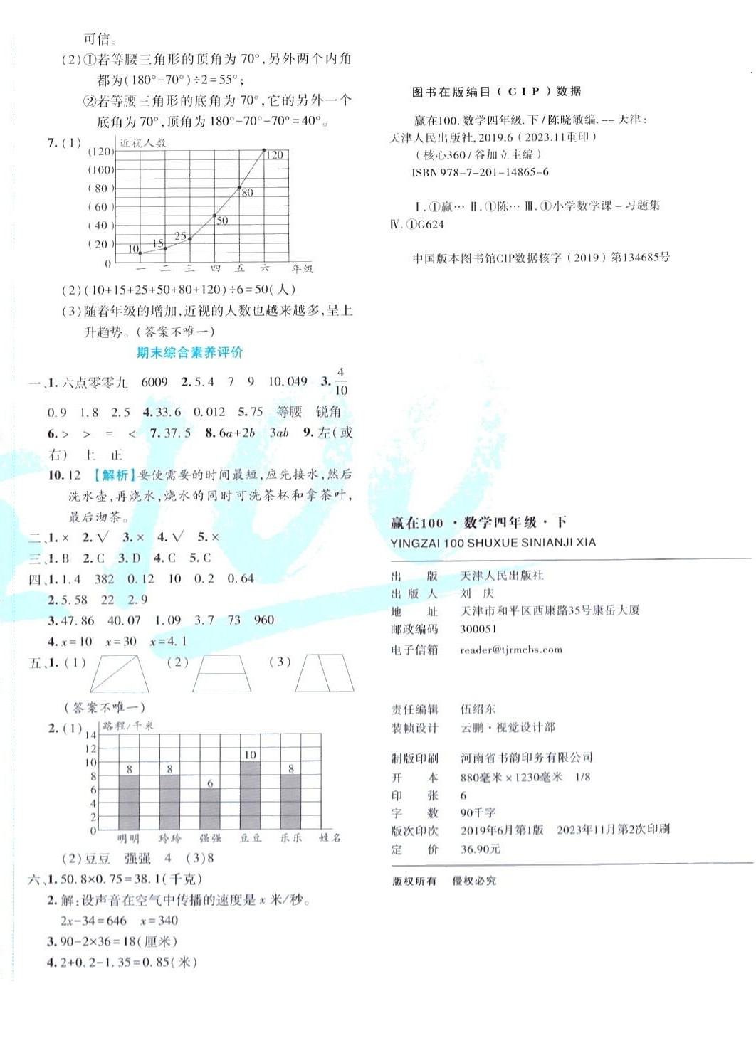注:目前有些书本章节名称可能整理的还不是很完善,但都是按照顺序排列的,请同学们按照顺序仔细查找。练习册 2024年赢在100四年级数学下册北师大版 答案主要是用来给同学们做完题方便对答案用的,请勿直接抄袭。
