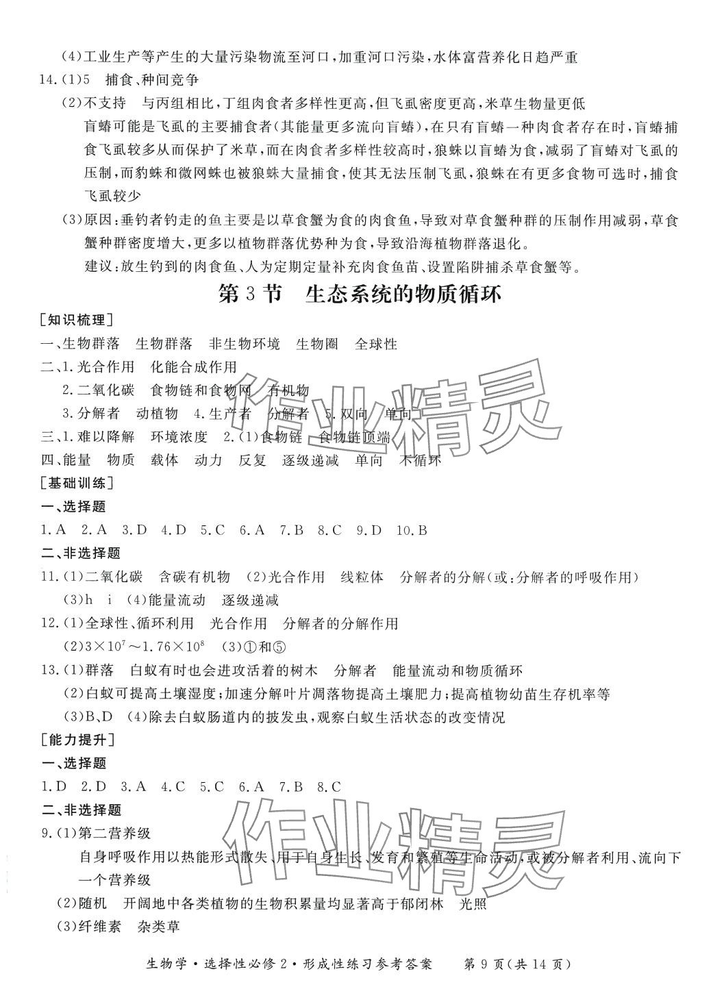 注:目前有些书本章节名称可能整理的还不是很完善,但都是按照顺序排列的,请同学们按照顺序仔细查找。练习册 2024年形成性练习与检测高中生物选择性必修2 答案主要是用来给同学们做完题方便对答案用的,请勿直接抄袭。