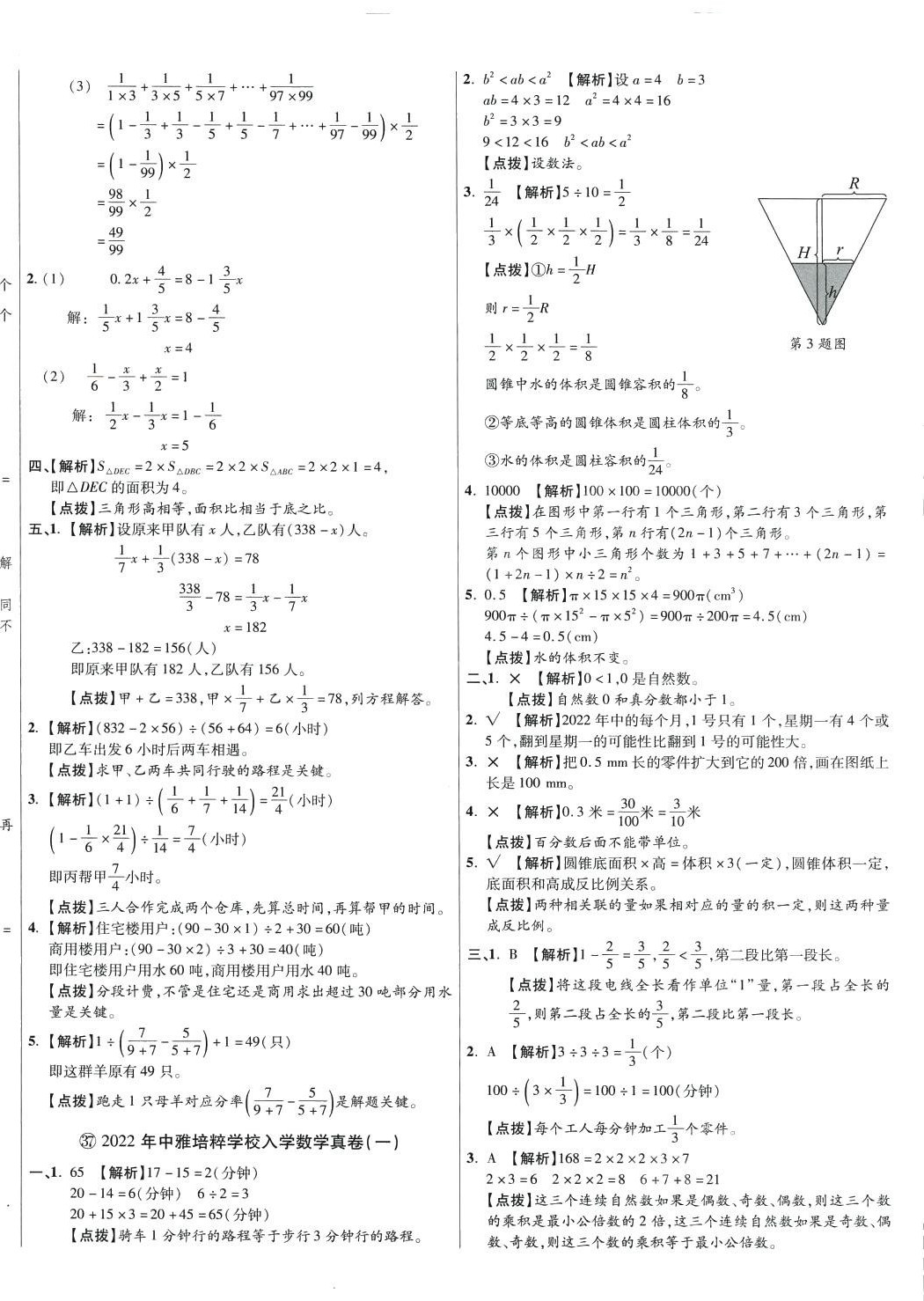 注:目前有些书本章节名称可能整理的还不是很完善,但都是按照顺序排列的,请同学们按照顺序仔细查找。练习册 2024年小学毕业升学真题详解六年级数学湖南专版 答案主要是用来给同学们做完题方便对答案用的,请勿直接抄袭。