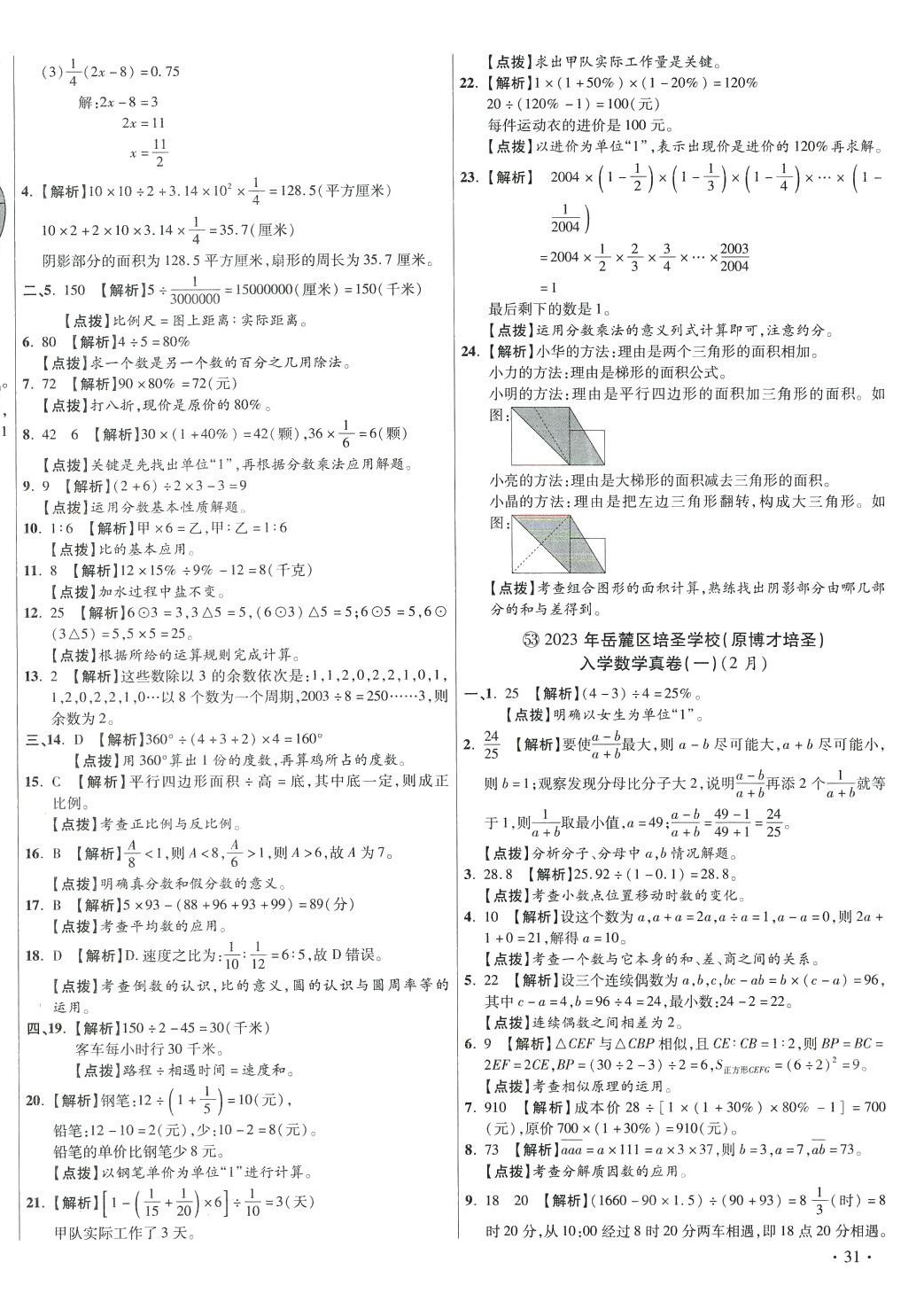 注:目前有些书本章节名称可能整理的还不是很完善,但都是按照顺序排列的,请同学们按照顺序仔细查找。练习册 2024年小学毕业升学真题详解六年级数学湖南专版 答案主要是用来给同学们做完题方便对答案用的,请勿直接抄袭。