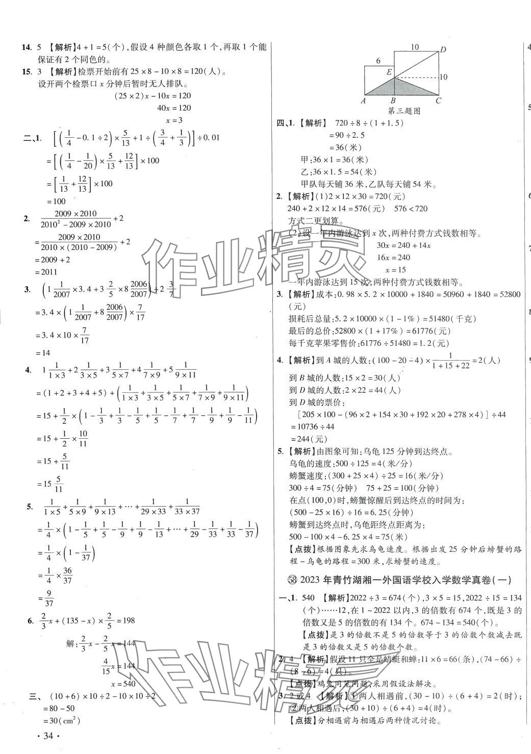 注:目前有些书本章节名称可能整理的还不是很完善,但都是按照顺序排列的,请同学们按照顺序仔细查找。练习册 2024年小学毕业升学真题详解六年级数学湖南专版 答案主要是用来给同学们做完题方便对答案用的,请勿直接抄袭。