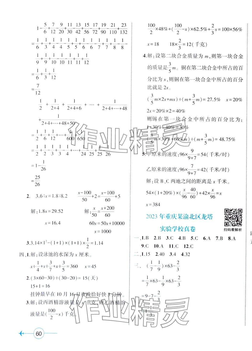 注:目前有些书本章节名称可能整理的还不是很完善,但都是按照顺序排列的,请同学们按照顺序仔细查找。练习册 2024年优派小升初必刷卷数学重庆专版 答案主要是用来给同学们做完题方便对答案用的,请勿直接抄袭。