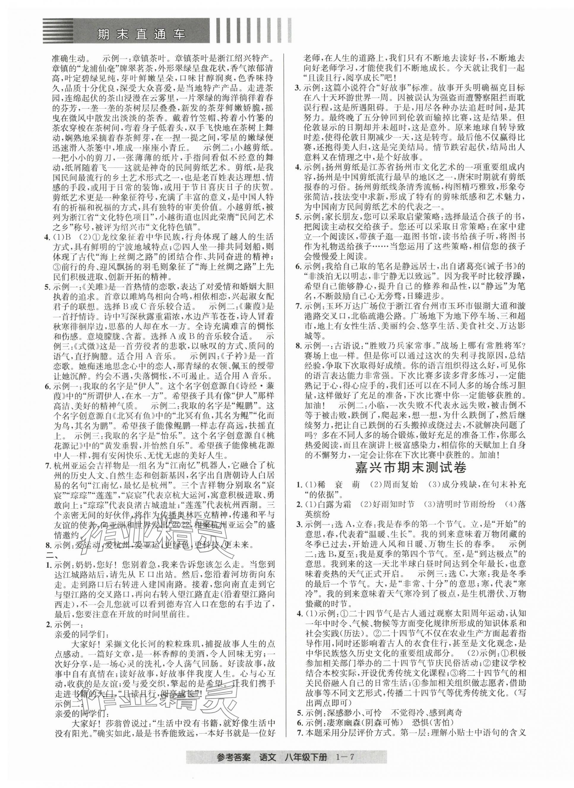 注:目前有些书本章节名称可能整理的还不是很完善,但都是按照顺序排列的,请同学们按照顺序仔细查找。练习册 2024年期末直通车八年级语文下册人教版 答案主要是用来给同学们做完题方便对答案用的,请勿直接抄袭。