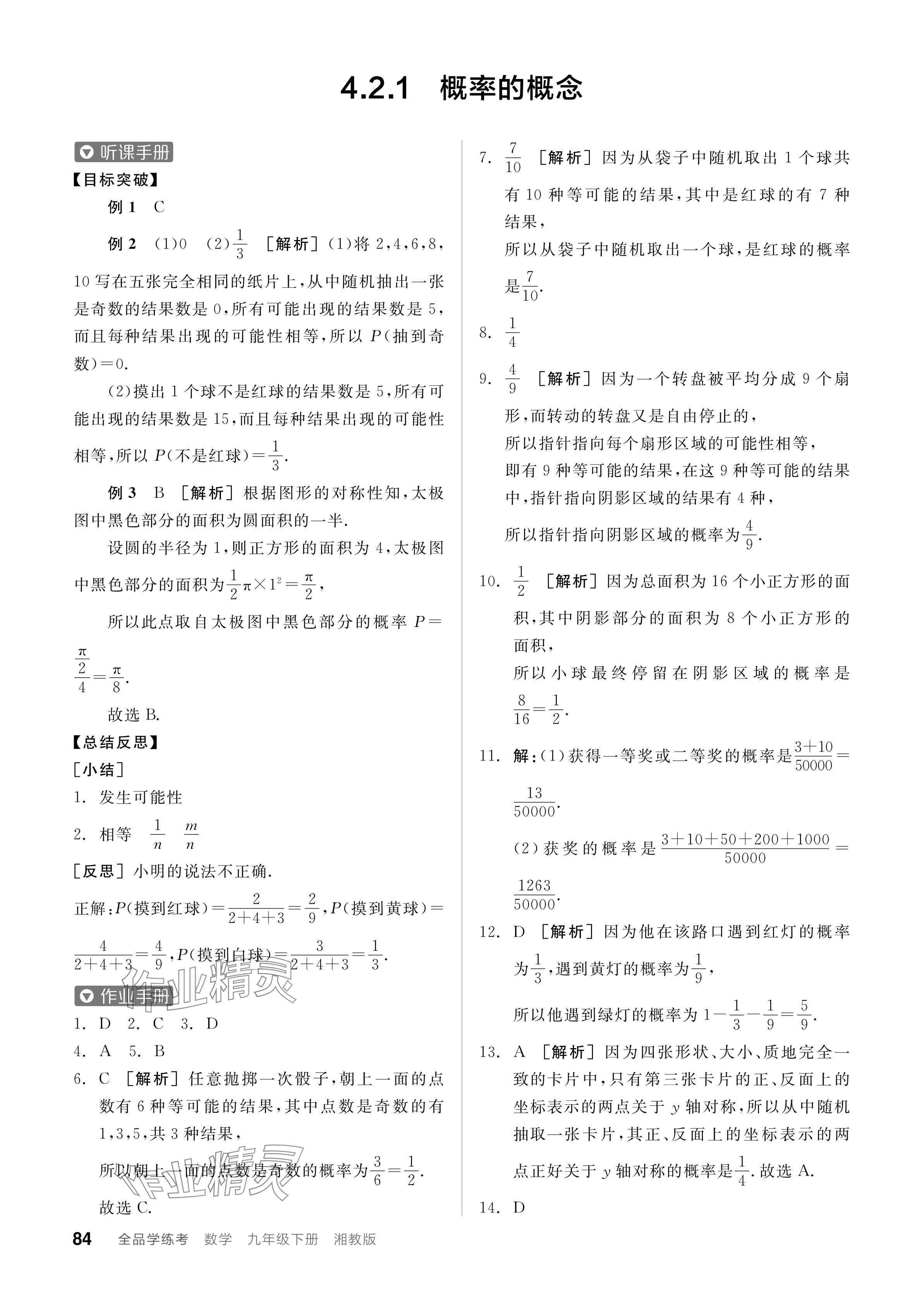 注:目前有些书本章节名称可能整理的还不是很完善,但都是按照顺序排列的,请同学们按照顺序仔细查找。练习册 2024年全品学练考九年级数学下册湘教版 答案主要是用来给同学们做完题方便对答案用的,请勿直接抄袭。