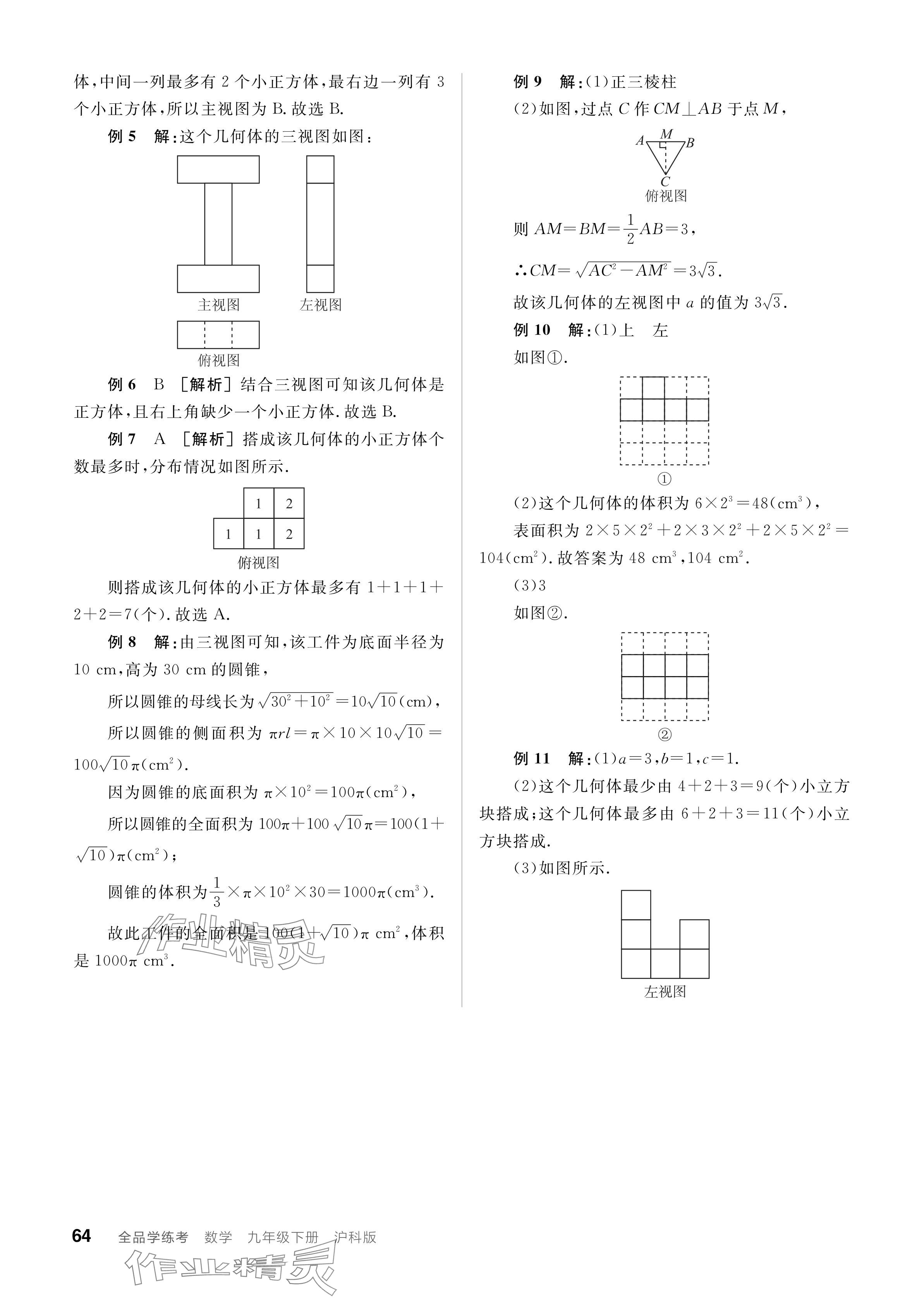 注:目前有些书本章节名称可能整理的还不是很完善,但都是按照顺序排列的,请同学们按照顺序仔细查找。练习册 2024年全品学练考九年级数学下册沪科版 答案主要是用来给同学们做完题方便对答案用的,请勿直接抄袭。