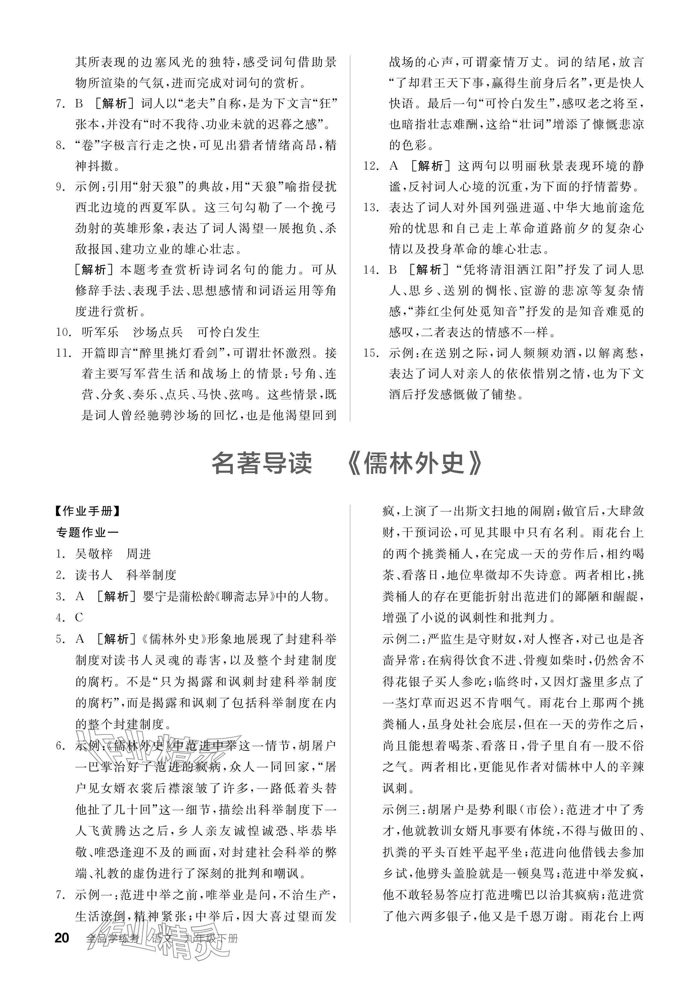 注:目前有些书本章节名称可能整理的还不是很完善,但都是按照顺序排列的,请同学们按照顺序仔细查找。练习册 2024年全品学练考九年级语文下册人教版 答案主要是用来给同学们做完题方便对答案用的,请勿直接抄袭。