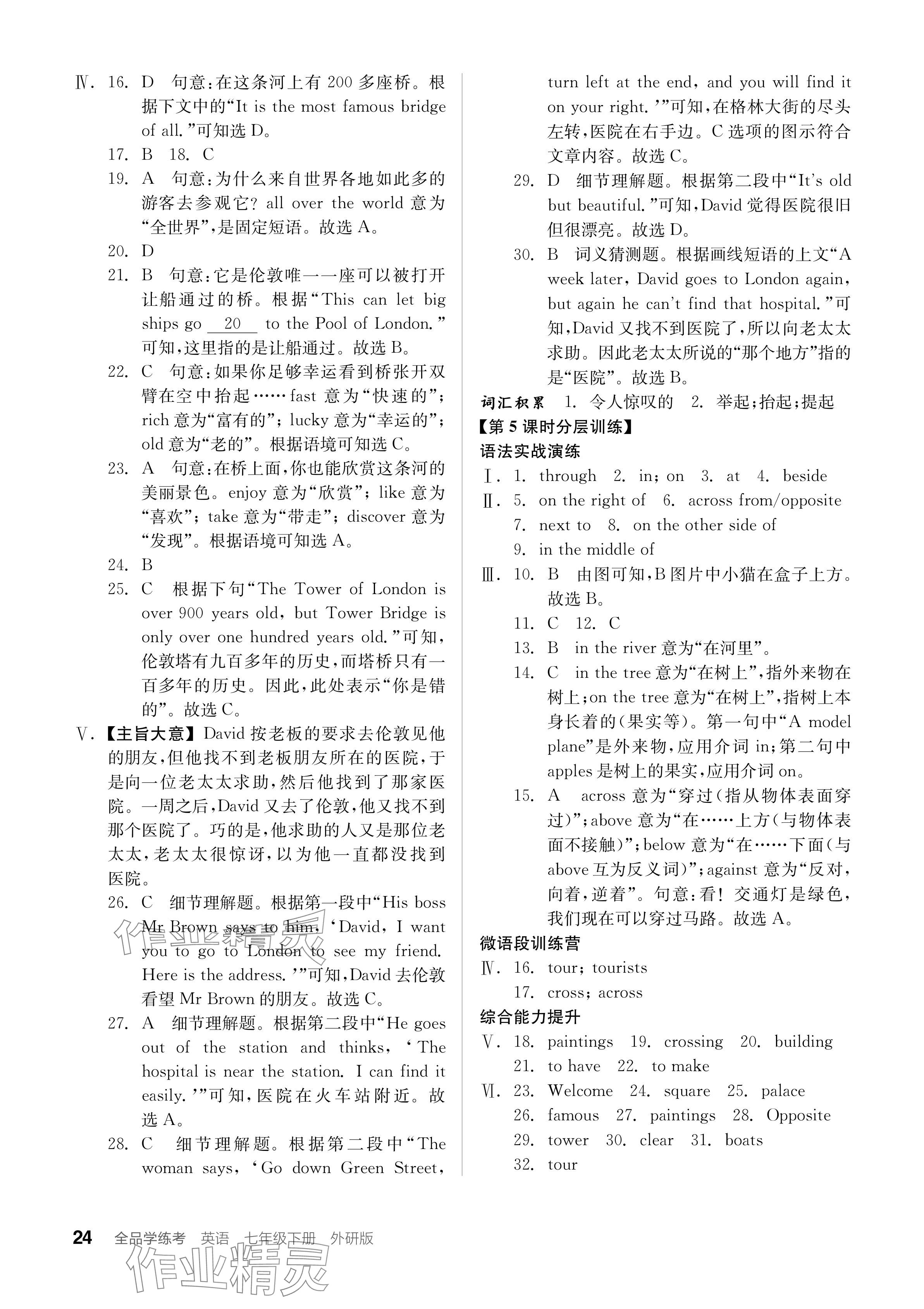注:目前有些书本章节名称可能整理的还不是很完善,但都是按照顺序排列的,请同学们按照顺序仔细查找。练习册 2024年全品学练考七年级英语下册外研版 答案主要是用来给同学们做完题方便对答案用的,请勿直接抄袭。