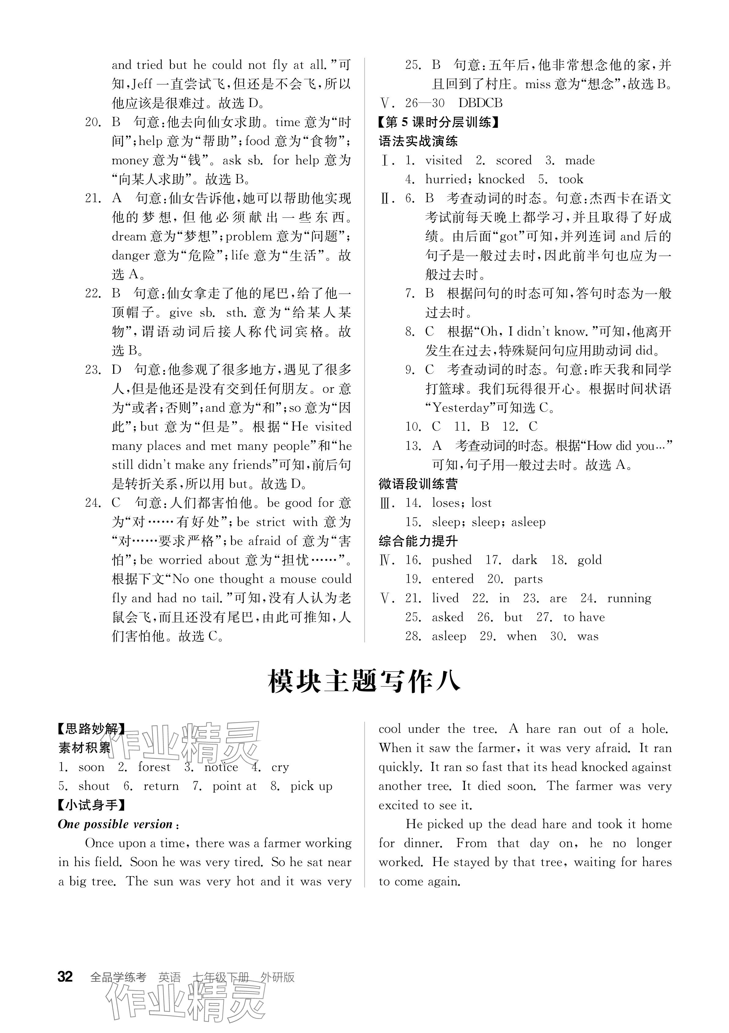 注:目前有些书本章节名称可能整理的还不是很完善,但都是按照顺序排列的,请同学们按照顺序仔细查找。练习册 2024年全品学练考七年级英语下册外研版 答案主要是用来给同学们做完题方便对答案用的,请勿直接抄袭。