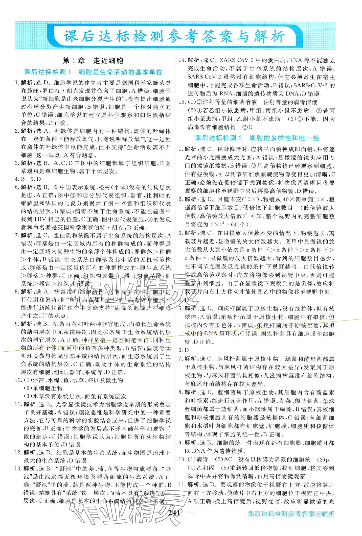 注:目前有些书本章节名称可能整理的还不是很完善,但都是按照顺序排列的,请同学们按照顺序仔细查找。练习册 2024年新坐标同步练习高中生物必修1人教版青海专版 答案主要是用来给同学们做完题方便对答案用的,请勿直接抄袭。