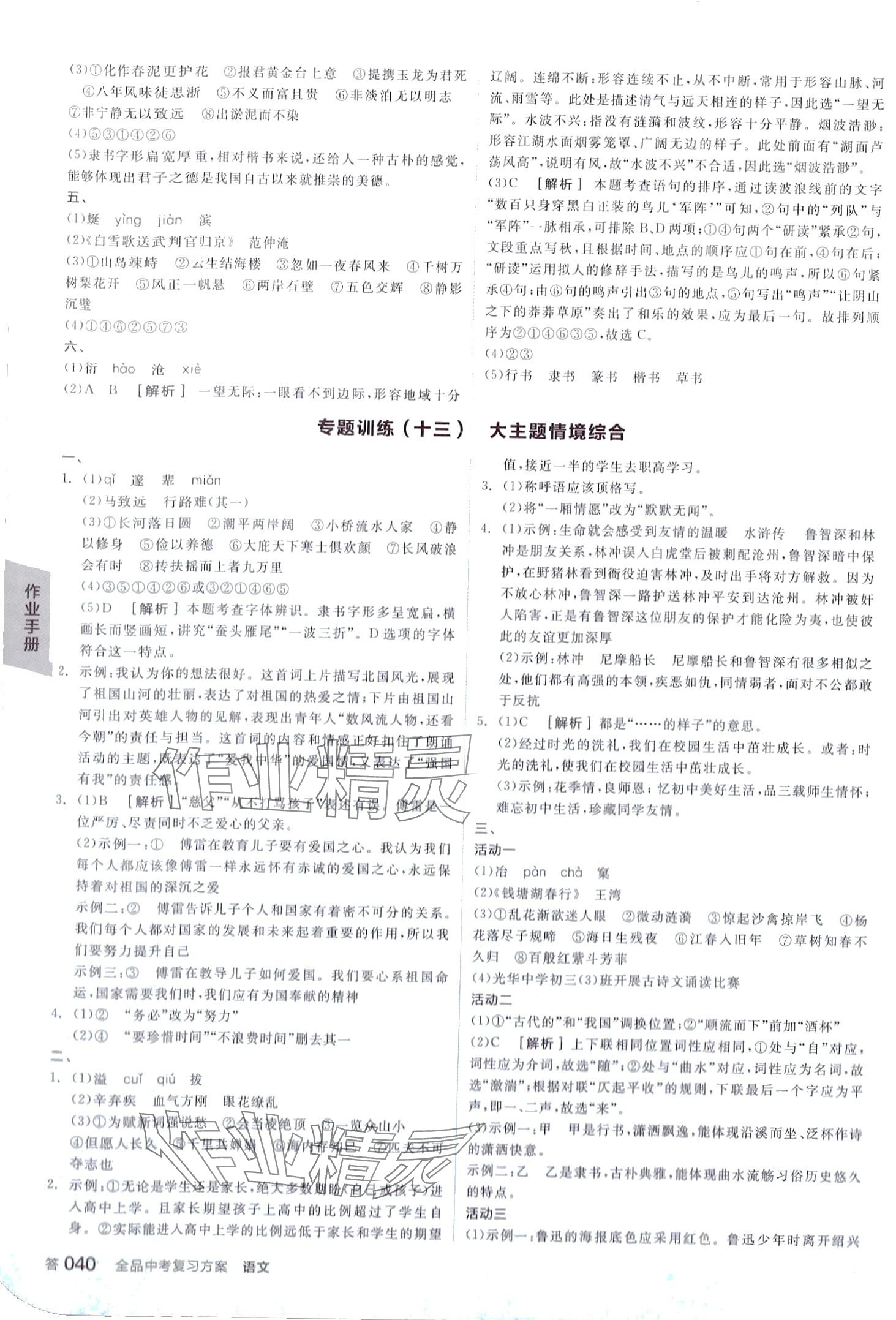 注:目前有些书本章节名称可能整理的还不是很完善,但都是按照顺序排列的,请同学们按照顺序仔细查找。练习册 2024年全品中考复习方案语文中考呼和浩特专版 答案主要是用来给同学们做完题方便对答案用的,请勿直接抄袭。