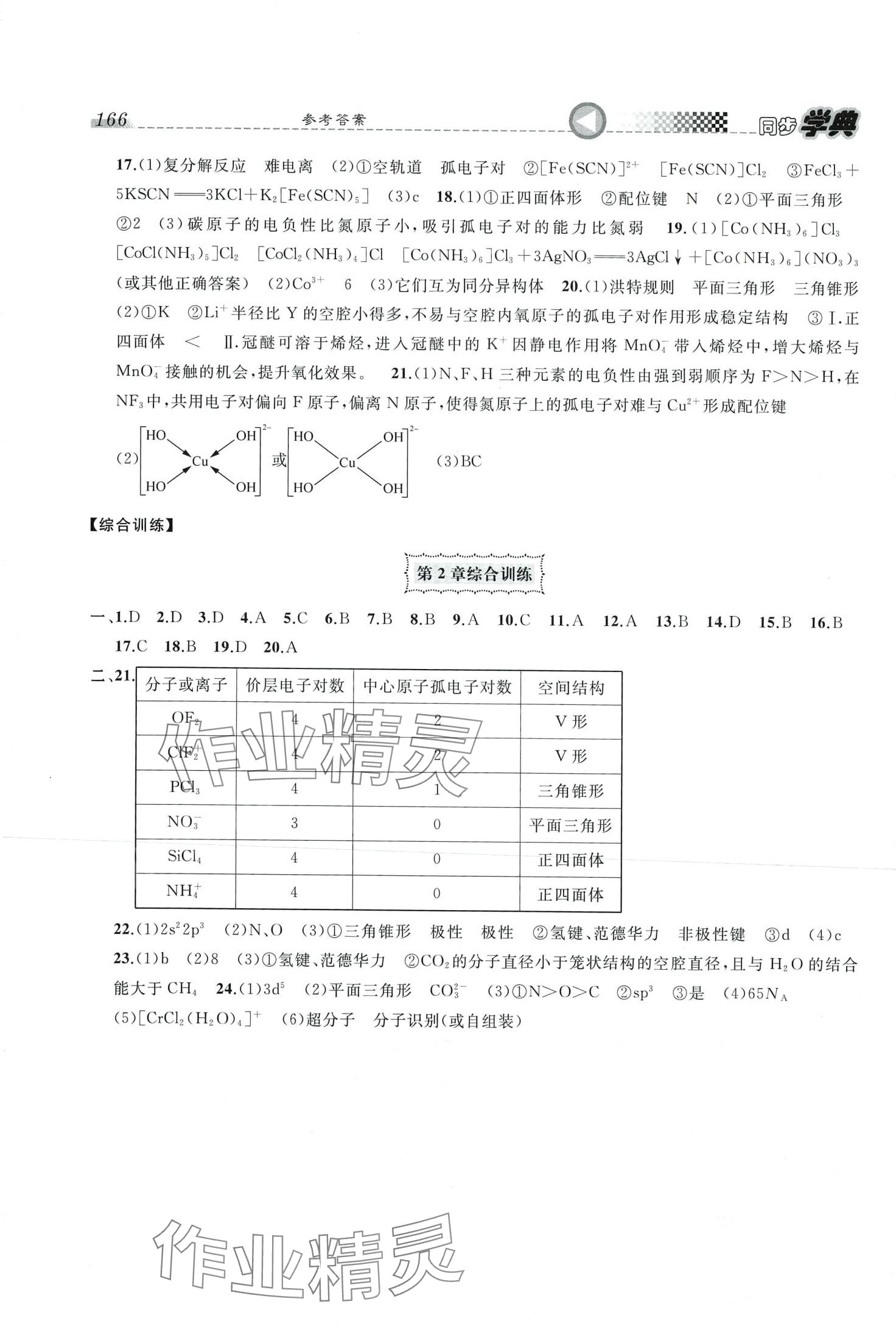 注:目前有些书本章节名称可能整理的还不是很完善,但都是按照顺序排列的,请同学们按照顺序仔细查找。练习册 2024年惠宇文化同步学典(物质结构与性质)高中化学选择性必修2 答案主要是用来给同学们做完题方便对答案用的,请勿直接抄袭。