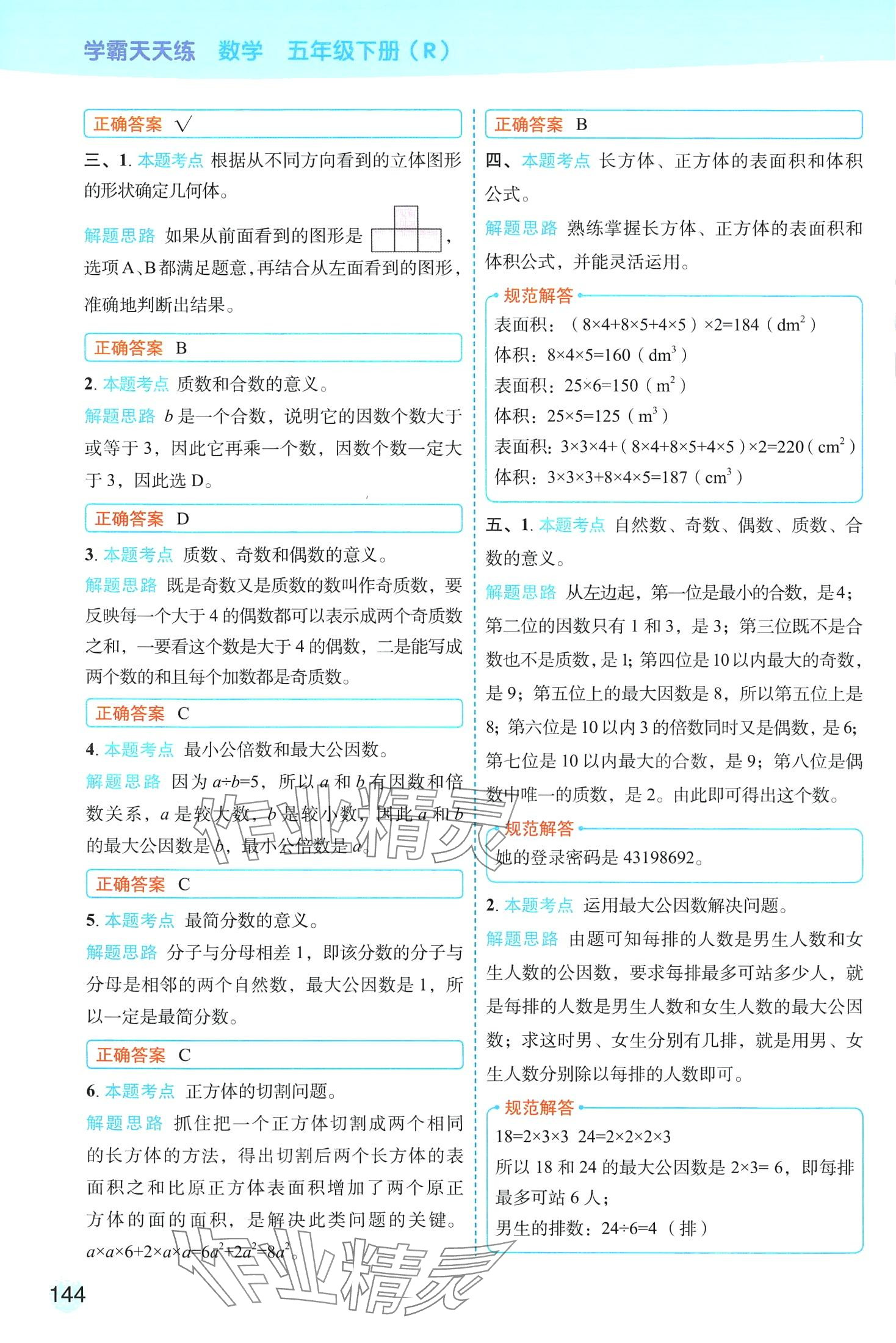 注:目前有些书本章节名称可能整理的还不是很完善,但都是按照顺序排列的,请同学们按照顺序仔细查找。练习册 2024年黄冈学霸天天练五年级数学下册人教版 答案主要是用来给同学们做完题方便对答案用的,请勿直接抄袭。