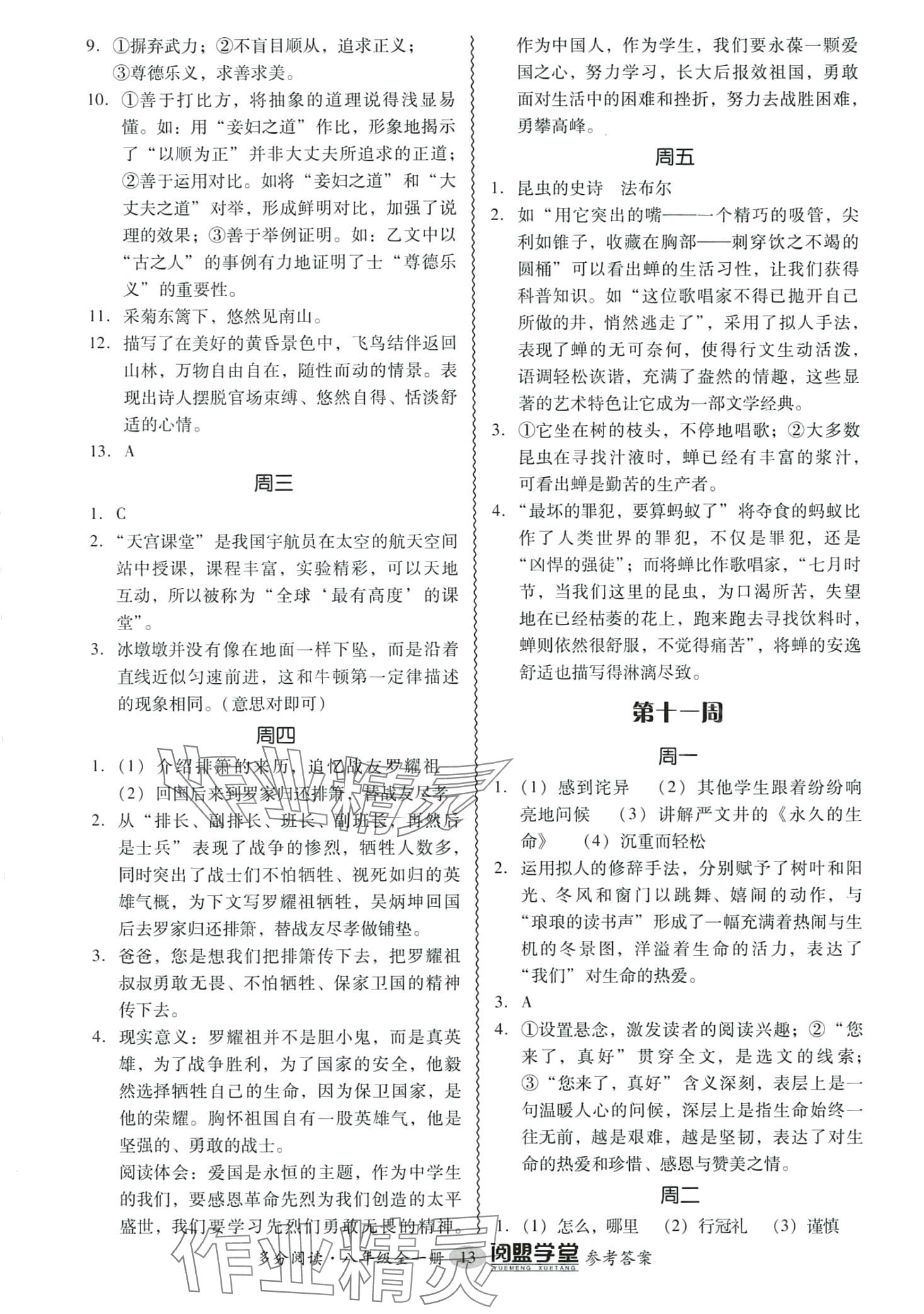注:目前有些书本章节名称可能整理的还不是很完善,但都是按照顺序排列的,请同学们按照顺序仔细查找。练习册 2024年多分阅读现代文导易学八年级语文 答案主要是用来给同学们做完题方便对答案用的,请勿直接抄袭。