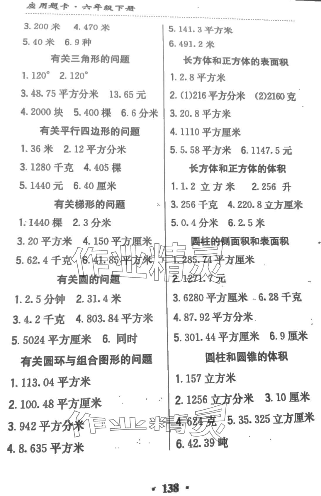 注:目前有些书本章节名称可能整理的还不是很完善,但都是按照顺序排列的,请同学们按照顺序仔细查找。练习册 2024年应用题卡河北美术出版社六年级数学下册人教版2 答案主要是用来给同学们做完题方便对答案用的,请勿直接抄袭。