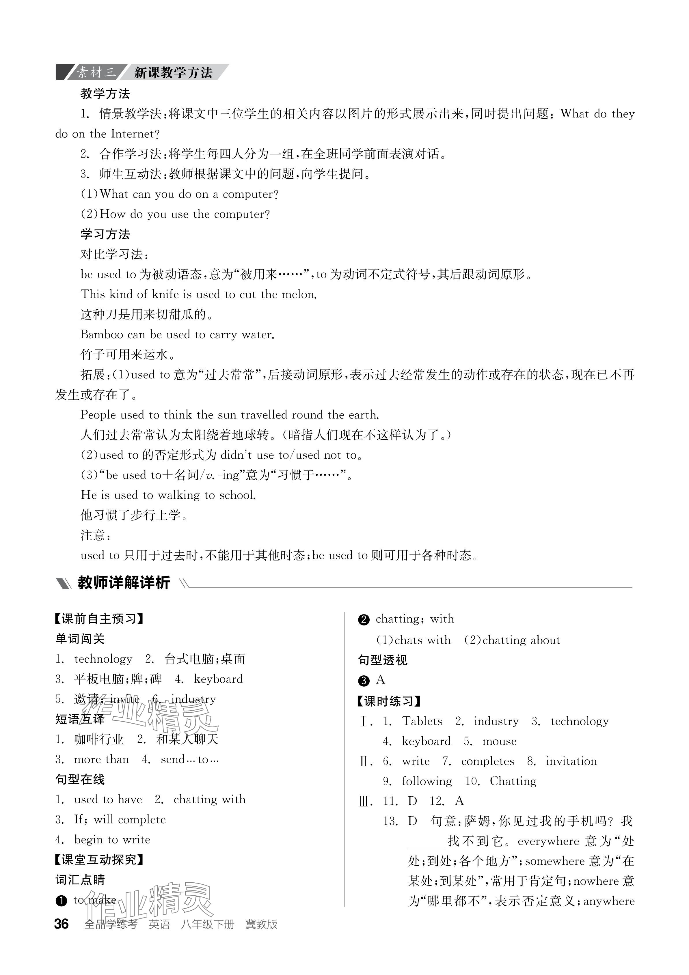 注:目前有些书本章节名称可能整理的还不是很完善,但都是按照顺序排列的,请同学们按照顺序仔细查找。练习册 2024年全品学练考八年级英语下册冀教版 答案主要是用来给同学们做完题方便对答案用的,请勿直接抄袭。