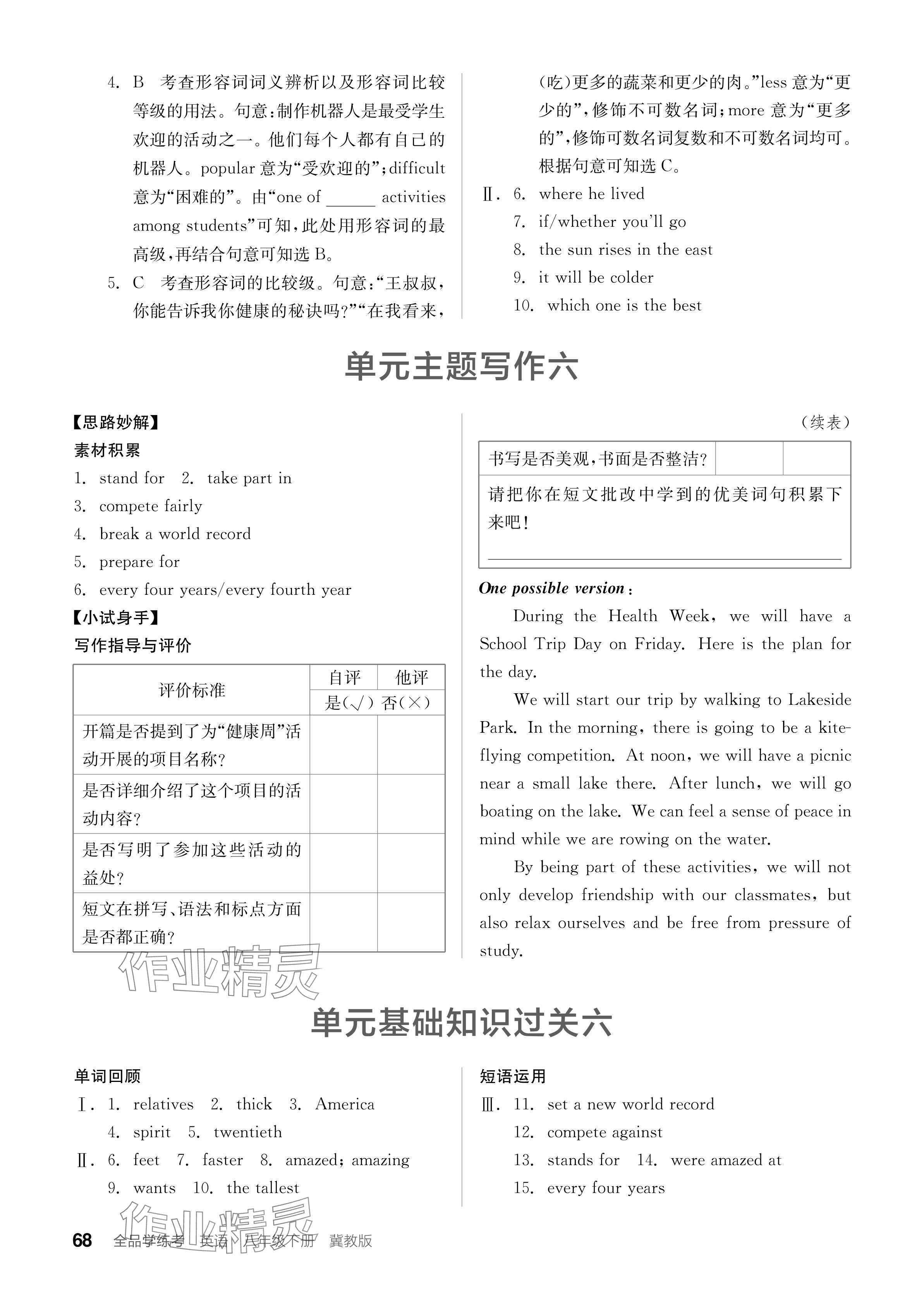 注:目前有些书本章节名称可能整理的还不是很完善,但都是按照顺序排列的,请同学们按照顺序仔细查找。练习册 2024年全品学练考八年级英语下册冀教版 答案主要是用来给同学们做完题方便对答案用的,请勿直接抄袭。