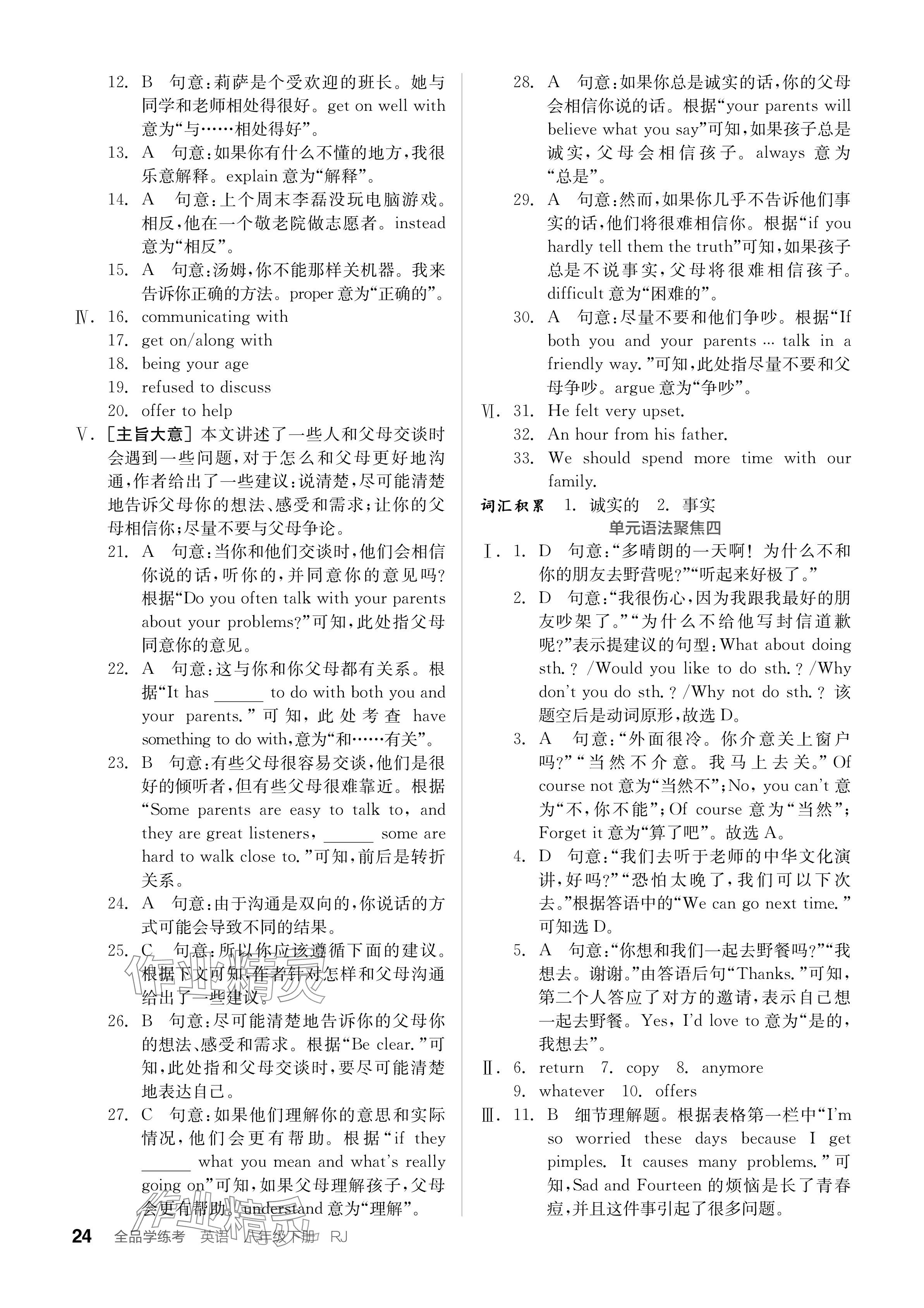 注:目前有些书本章节名称可能整理的还不是很完善,但都是按照顺序排列的,请同学们按照顺序仔细查找。练习册 2024年全品学练考八年级英语下册人教版安徽专版 答案主要是用来给同学们做完题方便对答案用的,请勿直接抄袭。