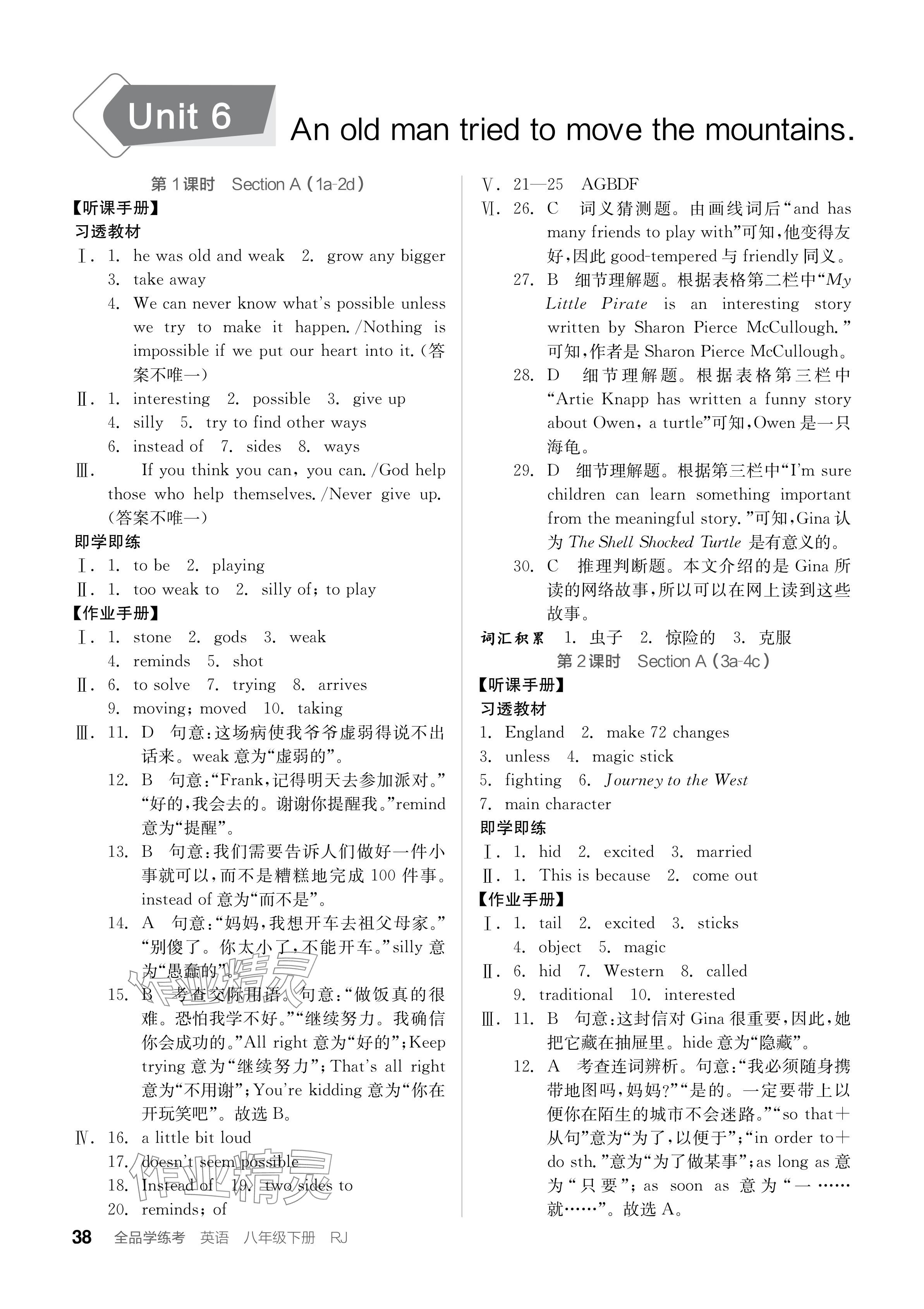 注:目前有些书本章节名称可能整理的还不是很完善,但都是按照顺序排列的,请同学们按照顺序仔细查找。练习册 2024年全品学练考八年级英语下册人教版安徽专版 答案主要是用来给同学们做完题方便对答案用的,请勿直接抄袭。