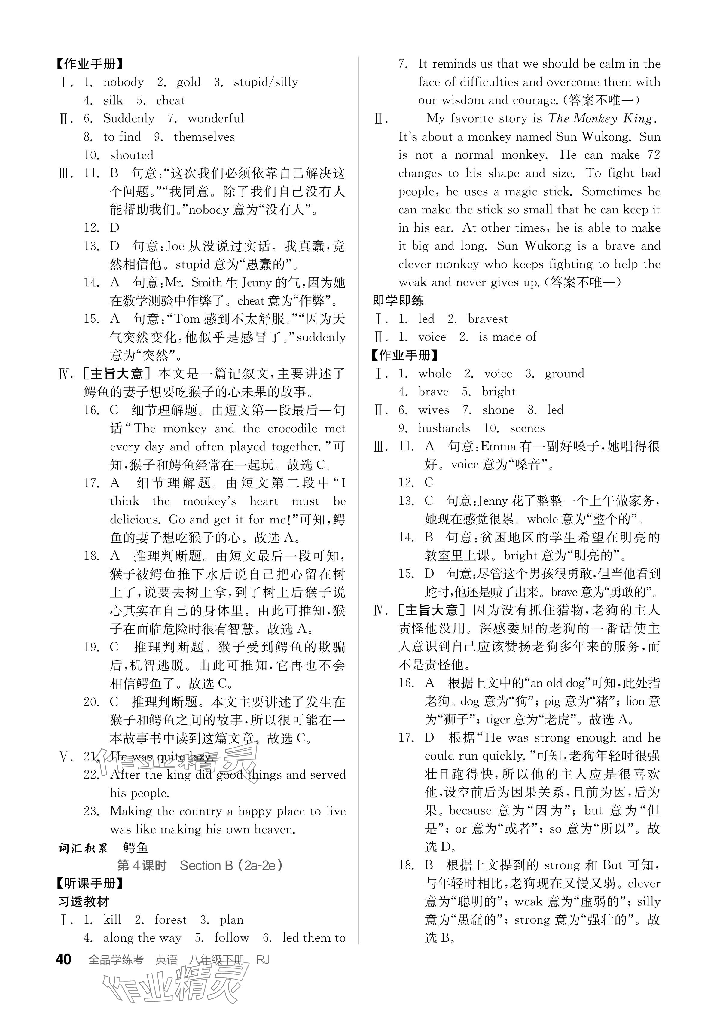 注:目前有些书本章节名称可能整理的还不是很完善,但都是按照顺序排列的,请同学们按照顺序仔细查找。练习册 2024年全品学练考八年级英语下册人教版安徽专版 答案主要是用来给同学们做完题方便对答案用的,请勿直接抄袭。