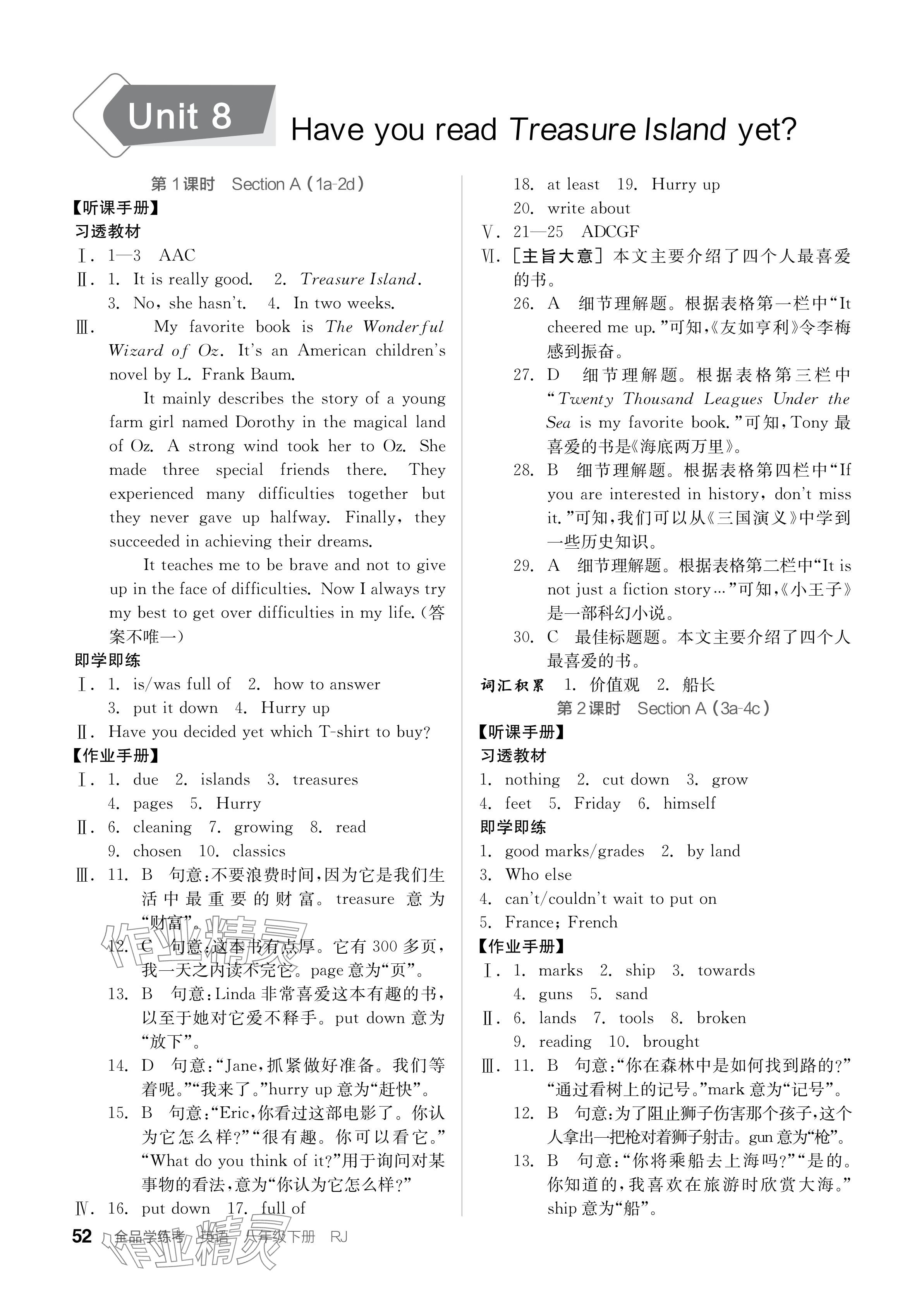 - 参考答案第52页