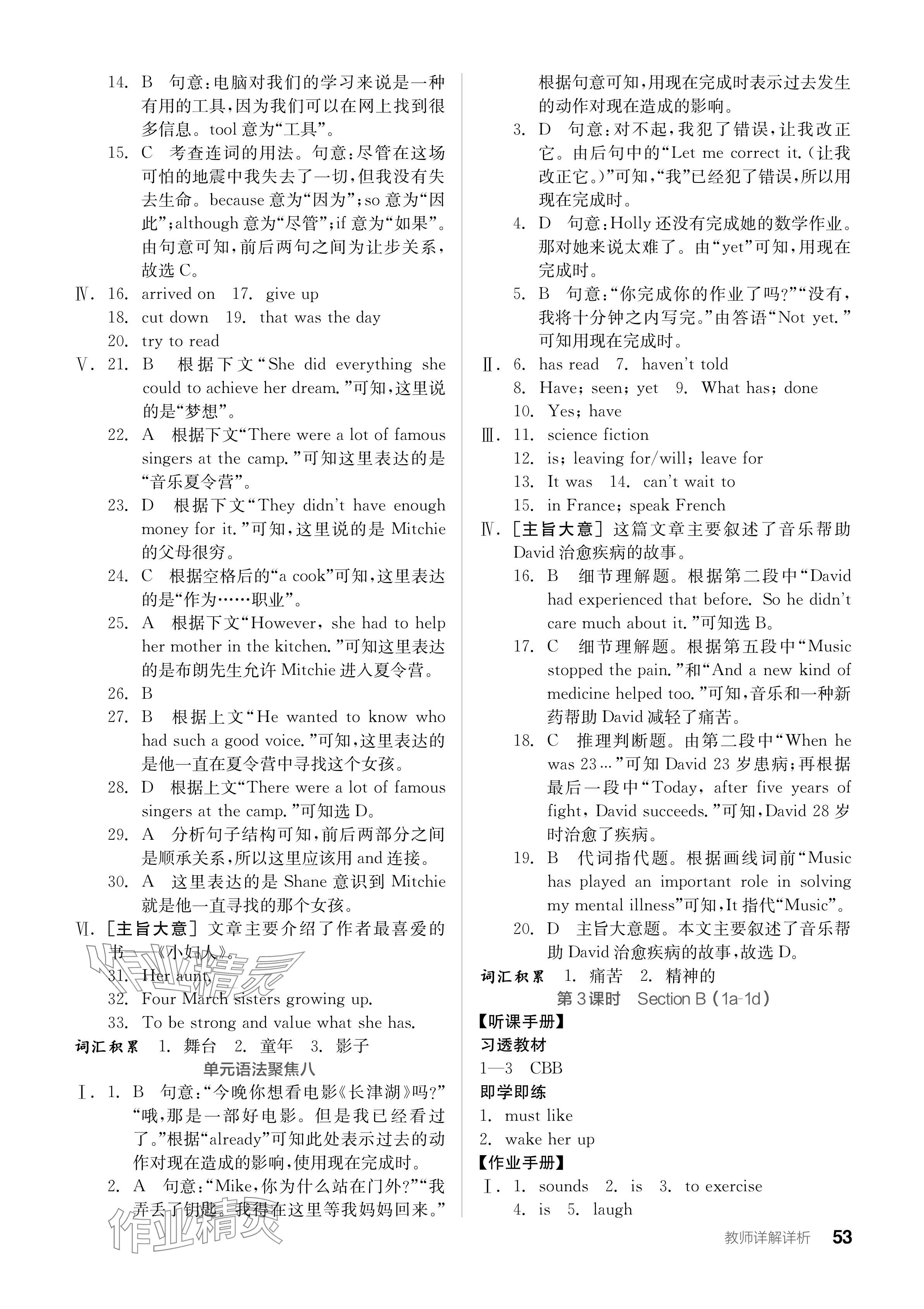 注:目前有些书本章节名称可能整理的还不是很完善,但都是按照顺序排列的,请同学们按照顺序仔细查找。练习册 2024年全品学练考八年级英语下册人教版安徽专版 答案主要是用来给同学们做完题方便对答案用的,请勿直接抄袭。