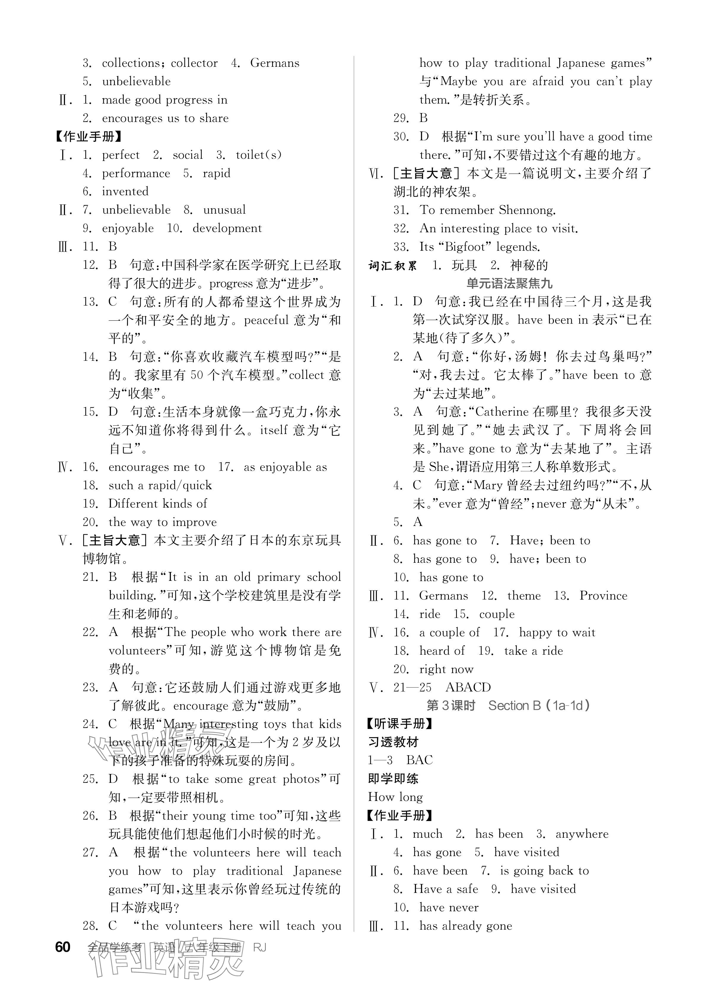 注:目前有些书本章节名称可能整理的还不是很完善,但都是按照顺序排列的,请同学们按照顺序仔细查找。练习册 2024年全品学练考八年级英语下册人教版安徽专版 答案主要是用来给同学们做完题方便对答案用的,请勿直接抄袭。