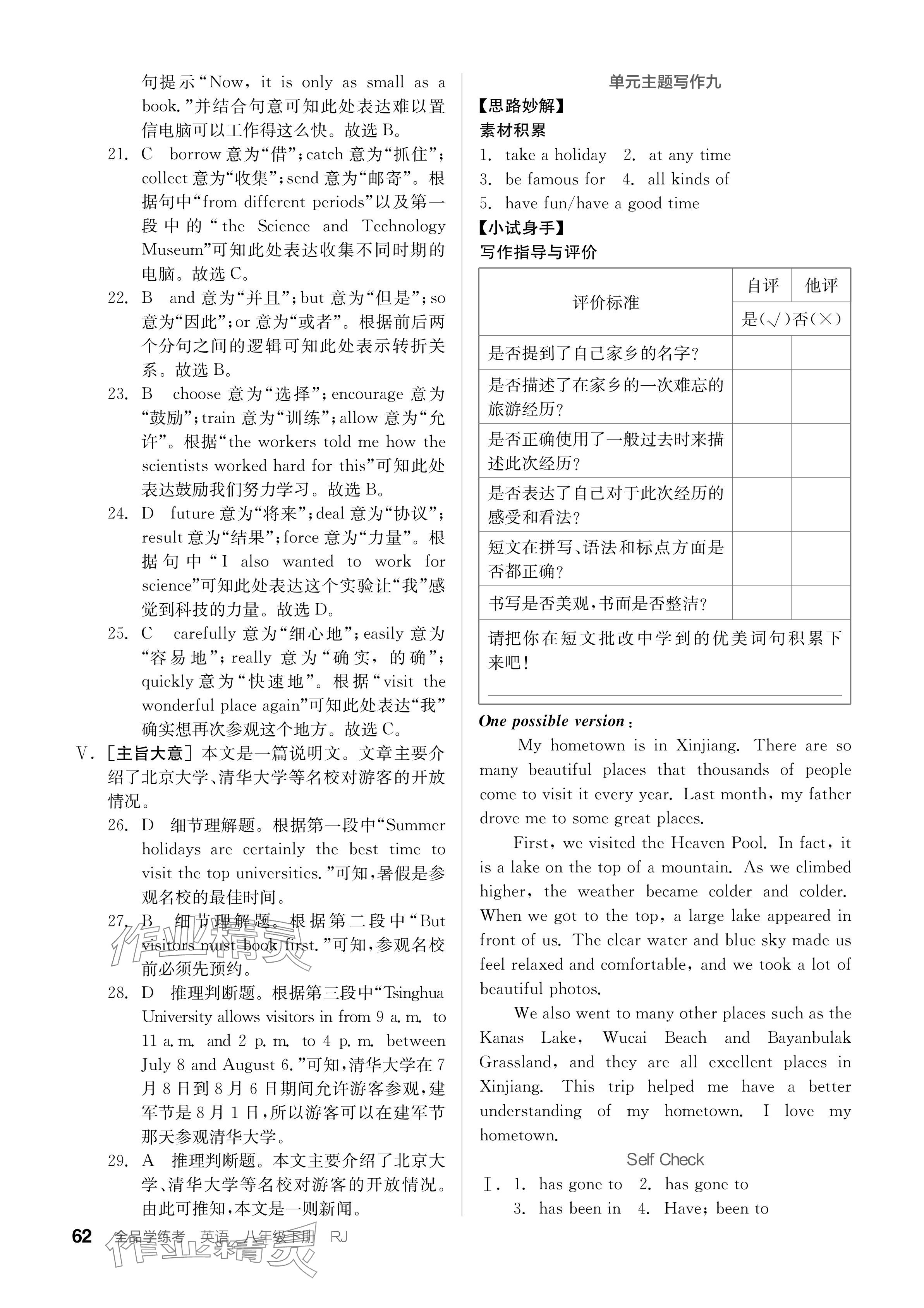 注:目前有些书本章节名称可能整理的还不是很完善,但都是按照顺序排列的,请同学们按照顺序仔细查找。练习册 2024年全品学练考八年级英语下册人教版安徽专版 答案主要是用来给同学们做完题方便对答案用的,请勿直接抄袭。