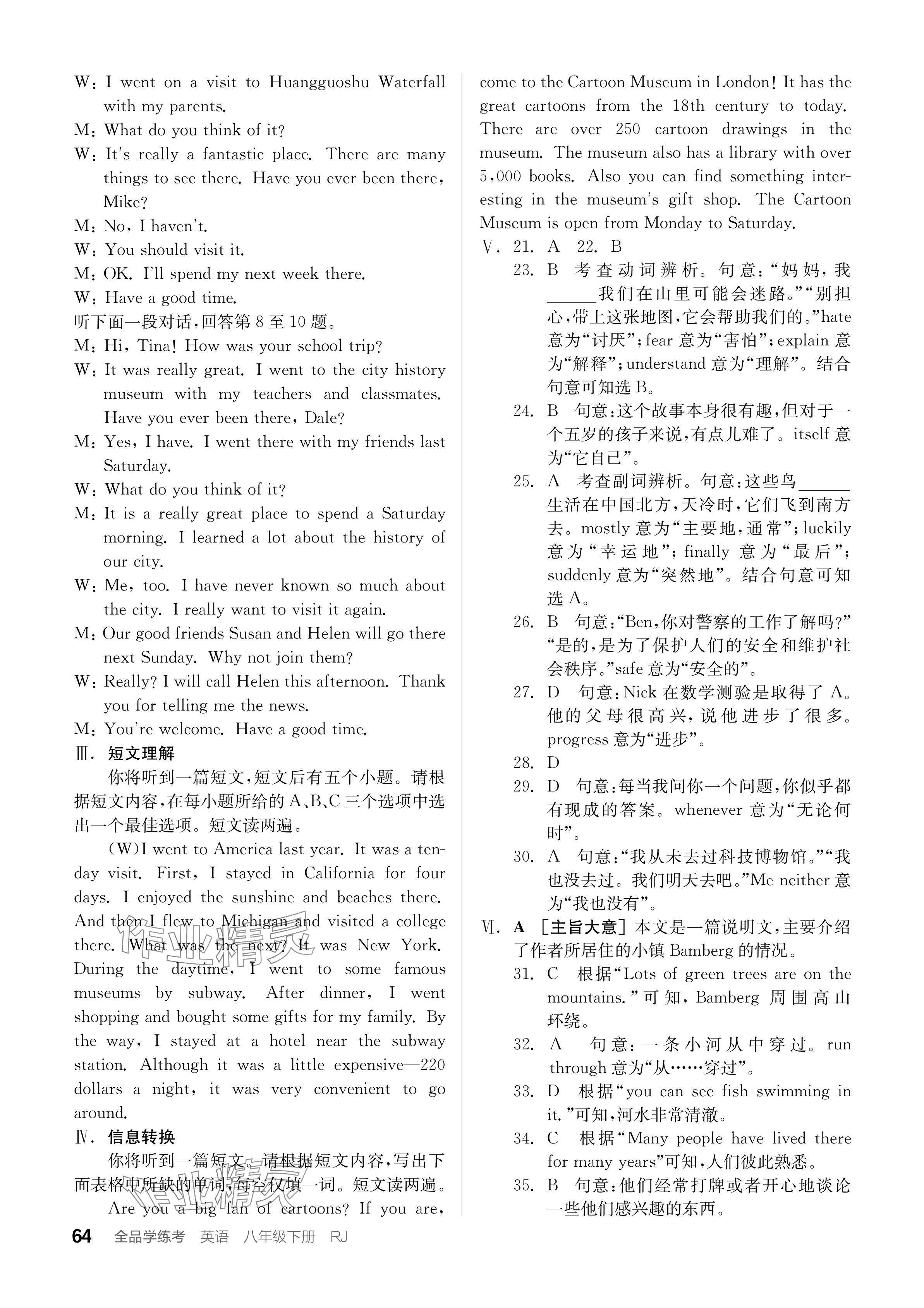 注:目前有些书本章节名称可能整理的还不是很完善,但都是按照顺序排列的,请同学们按照顺序仔细查找。练习册 2024年全品学练考八年级英语下册人教版安徽专版 答案主要是用来给同学们做完题方便对答案用的,请勿直接抄袭。