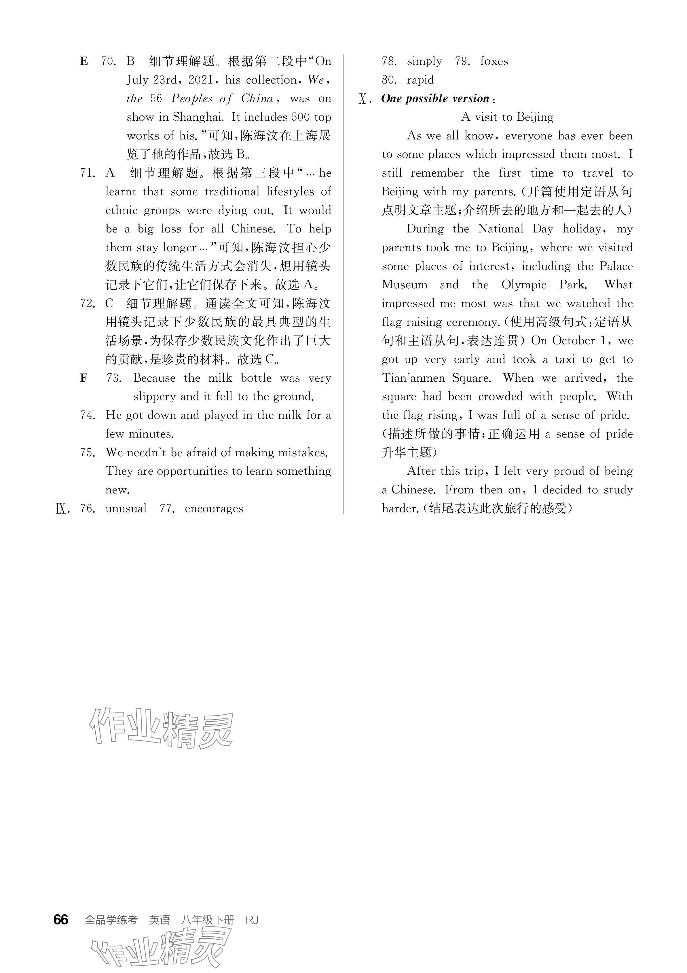 注:目前有些书本章节名称可能整理的还不是很完善,但都是按照顺序排列的,请同学们按照顺序仔细查找。练习册 2024年全品学练考八年级英语下册人教版安徽专版 答案主要是用来给同学们做完题方便对答案用的,请勿直接抄袭。