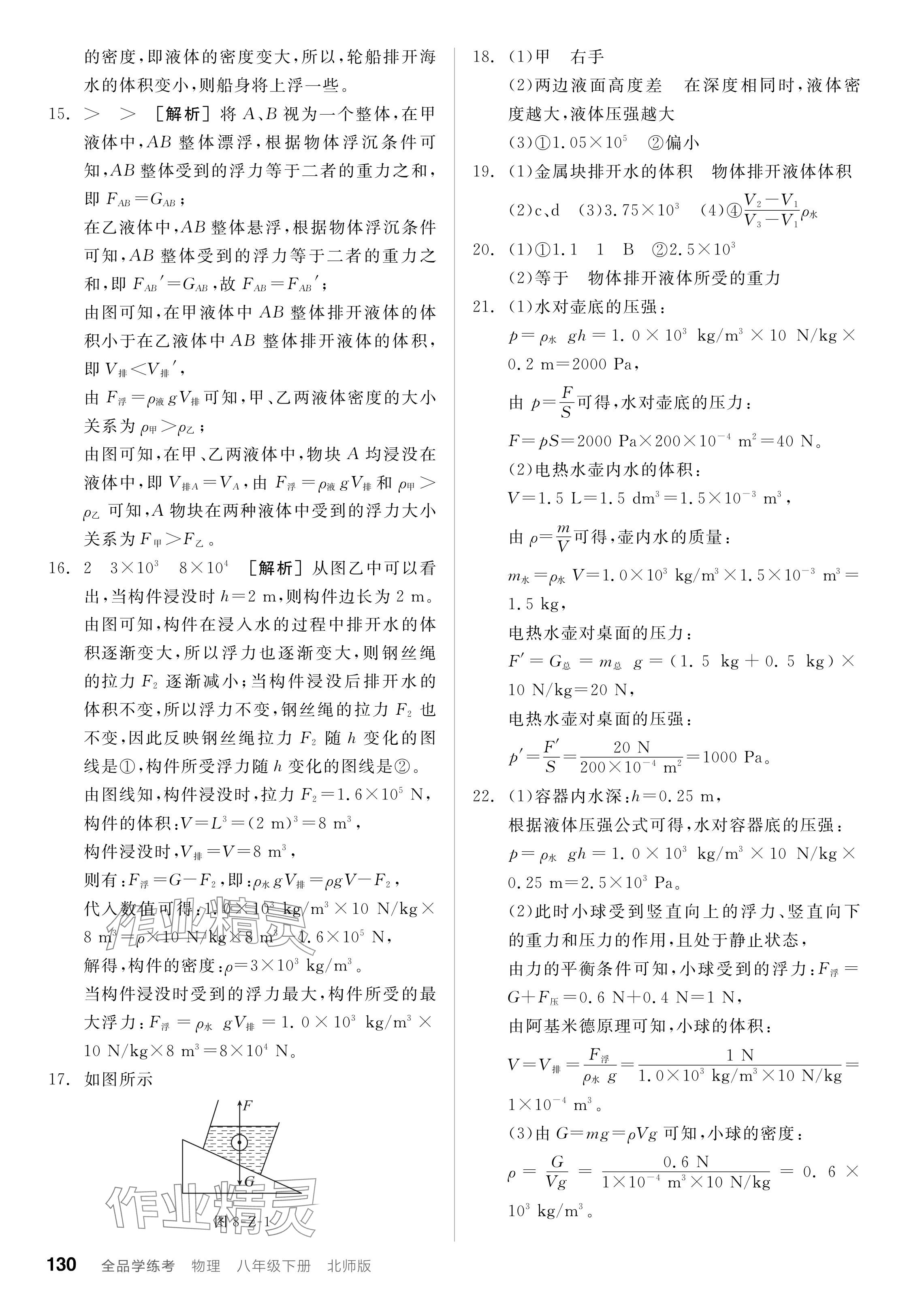 注:目前有些书本章节名称可能整理的还不是很完善,但都是按照顺序排列的,请同学们按照顺序仔细查找。练习册 2024年全品学练考八年级物理下册北师大版 答案主要是用来给同学们做完题方便对答案用的,请勿直接抄袭。