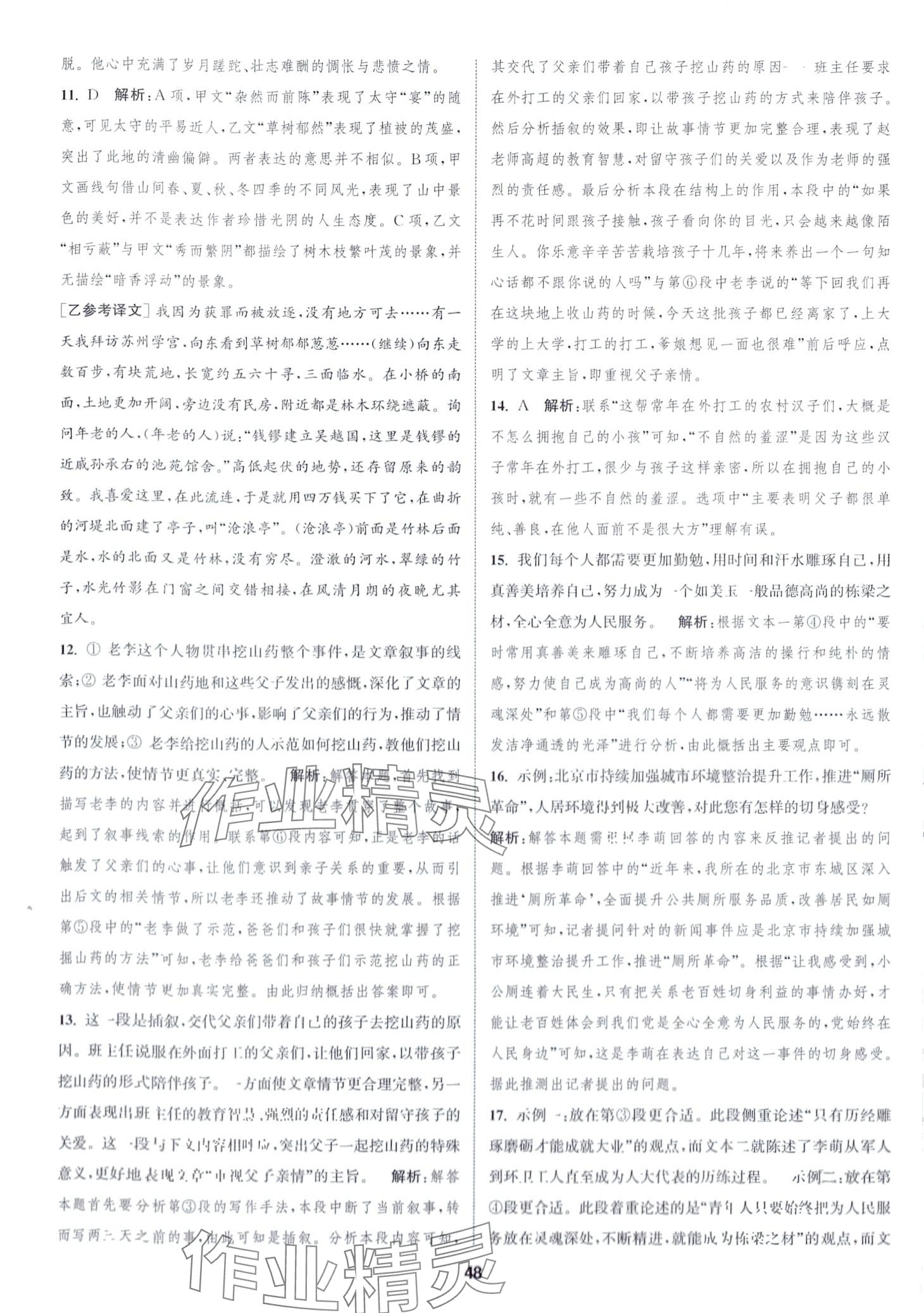 注:目前有些书本章节名称可能整理的还不是很完善,但都是按照顺序排列的,请同学们按照顺序仔细查找。练习册 2024年通城学典卷典语文中考江苏专版 答案主要是用来给同学们做完题方便对答案用的,请勿直接抄袭。