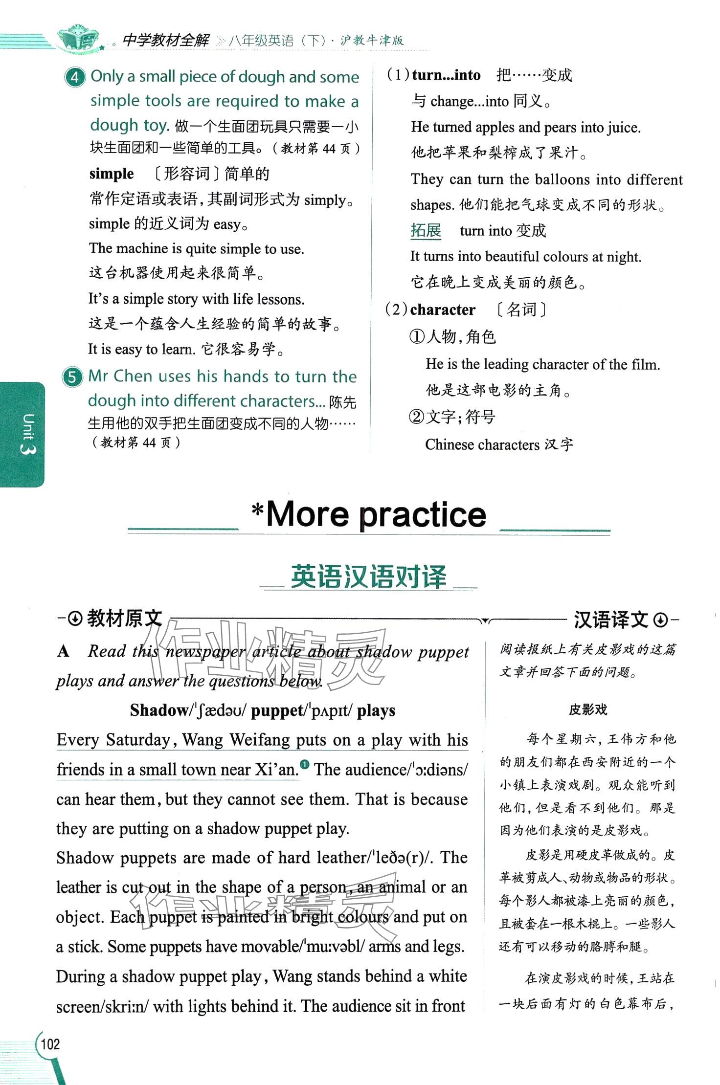 注:目前有些书本章节名称可能整理的还不是很完善,但都是按照顺序排列的,请同学们按照顺序仔细查找。练习册 2024年教材全解八年级英语下册沪教版 答案主要是用来给同学们做完题方便对答案用的,请勿直接抄袭。