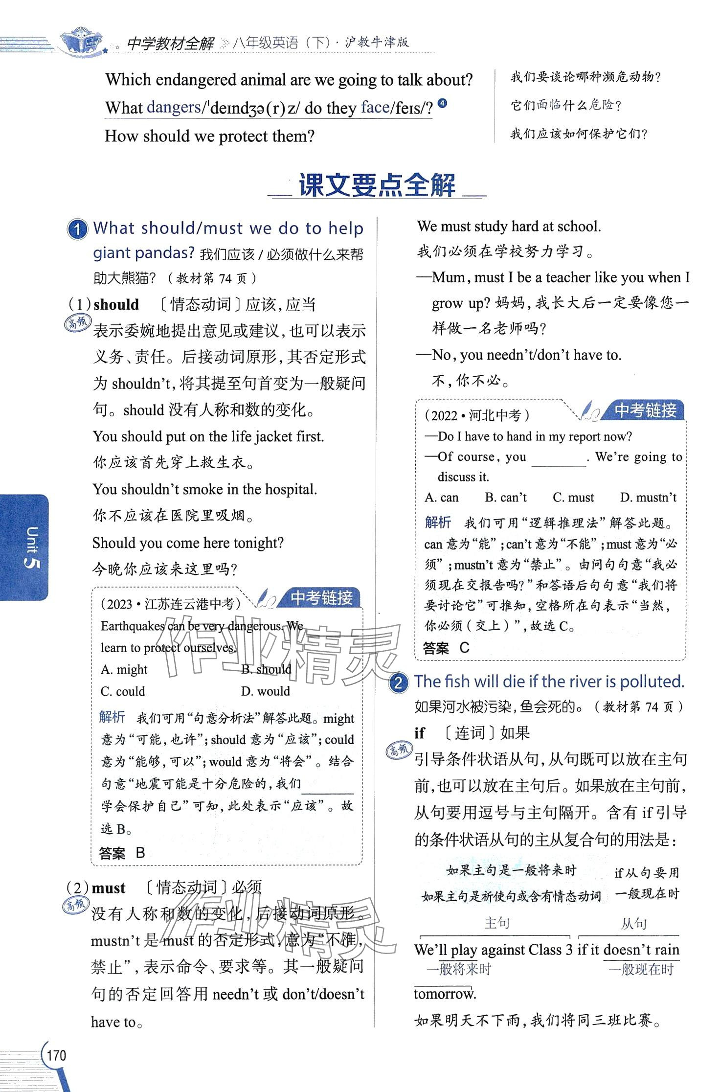 注:目前有些书本章节名称可能整理的还不是很完善,但都是按照顺序排列的,请同学们按照顺序仔细查找。练习册 2024年教材全解八年级英语下册沪教版 答案主要是用来给同学们做完题方便对答案用的,请勿直接抄袭。