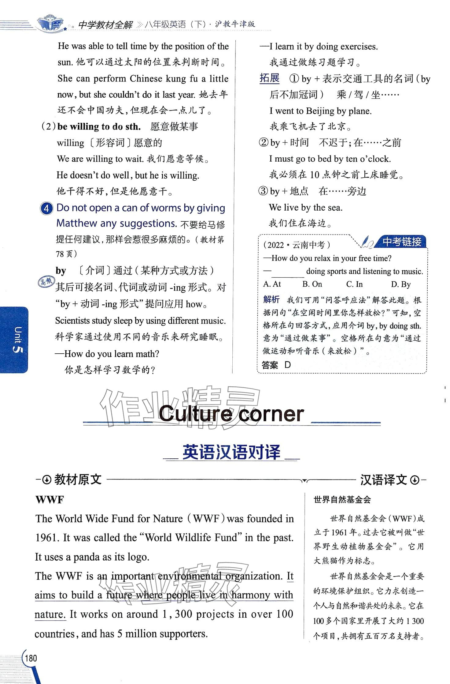 注:目前有些书本章节名称可能整理的还不是很完善,但都是按照顺序排列的,请同学们按照顺序仔细查找。练习册 2024年教材全解八年级英语下册沪教版 答案主要是用来给同学们做完题方便对答案用的,请勿直接抄袭。