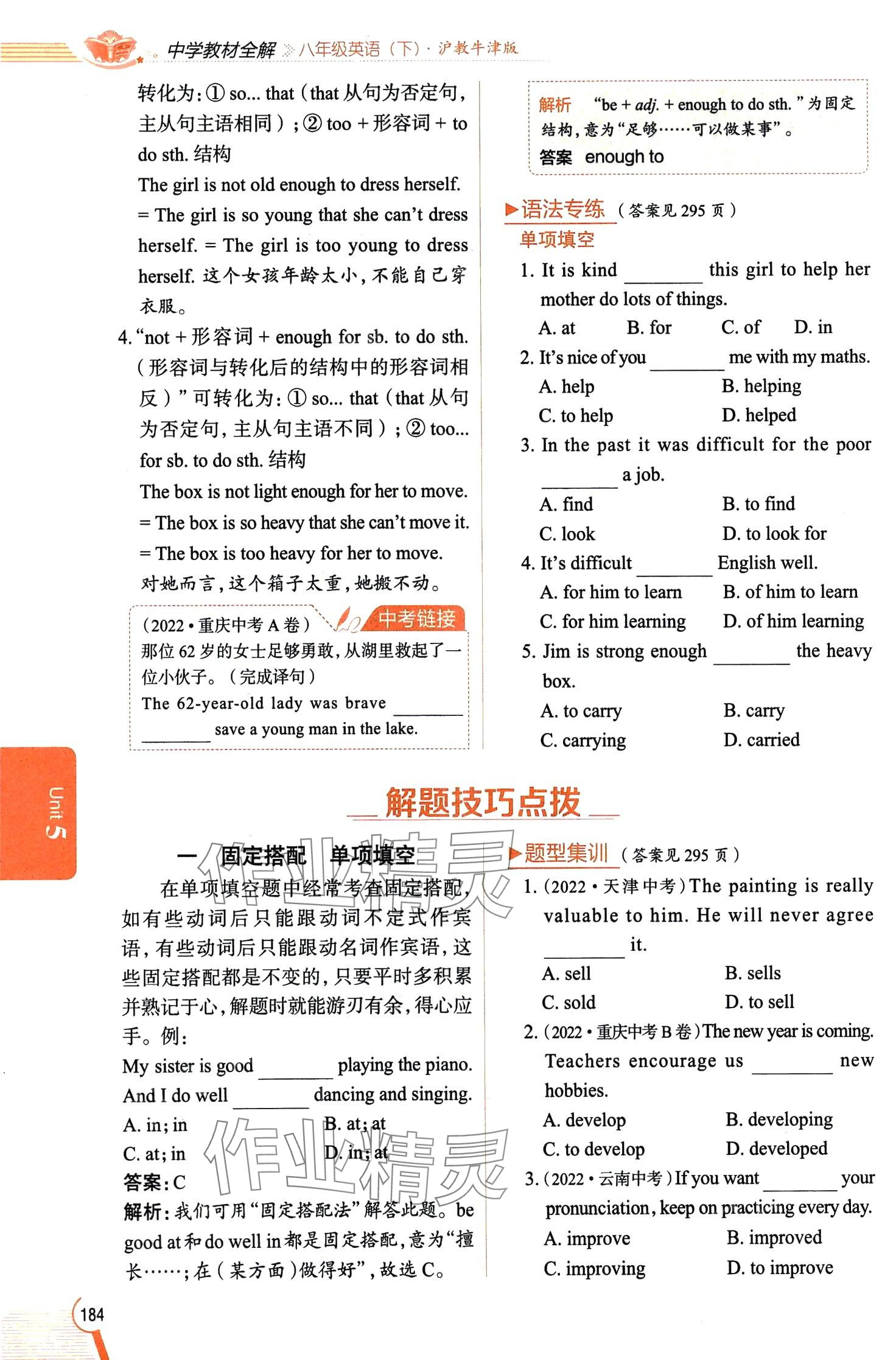 注:目前有些书本章节名称可能整理的还不是很完善,但都是按照顺序排列的,请同学们按照顺序仔细查找。练习册 2024年教材全解八年级英语下册沪教版 答案主要是用来给同学们做完题方便对答案用的,请勿直接抄袭。