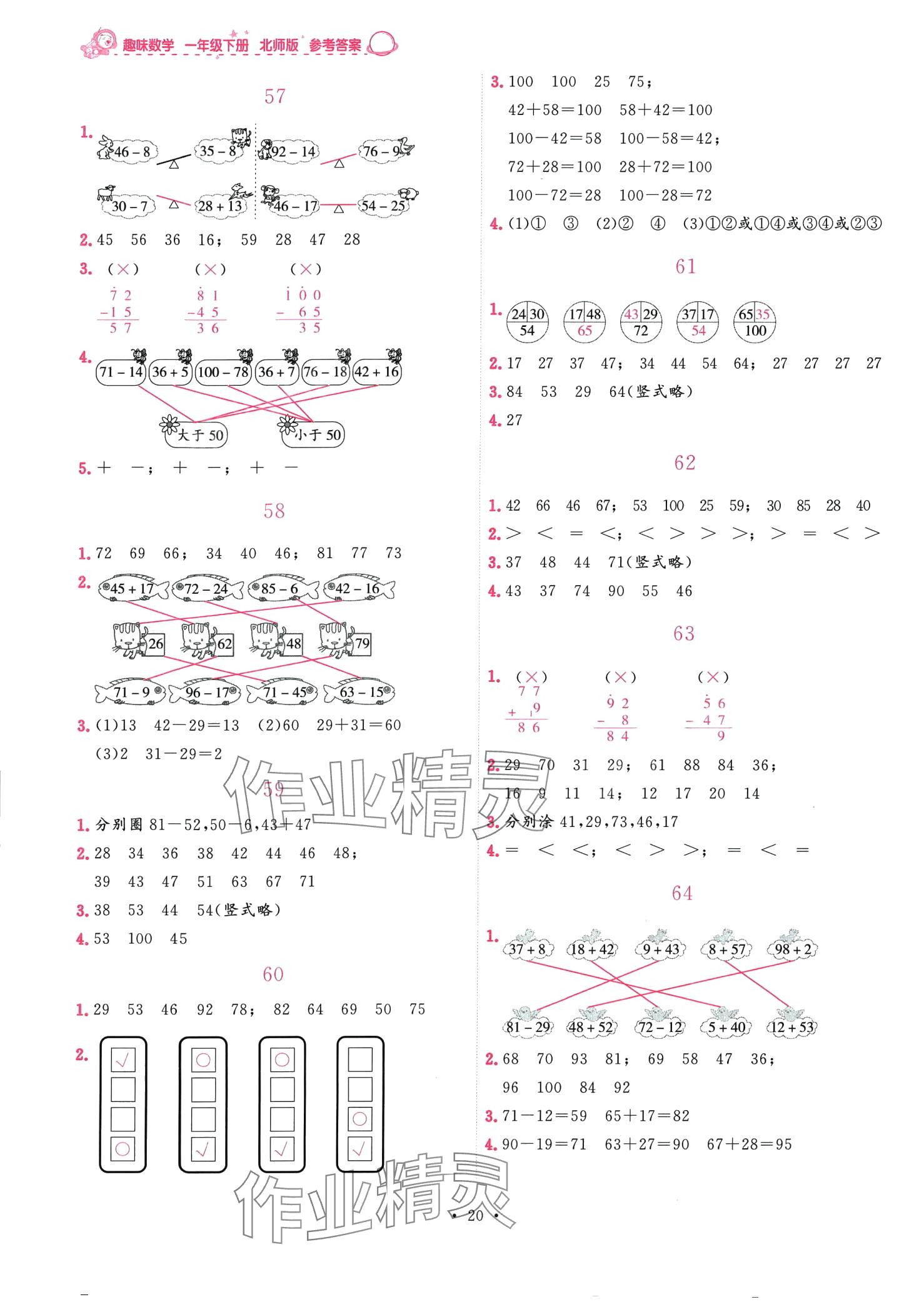 注:目前有些书本章节名称可能整理的还不是很完善,但都是按照顺序排列的,请同学们按照顺序仔细查找。练习册 2024年趣味数学一年级下册北师大版 答案主要是用来给同学们做完题方便对答案用的,请勿直接抄袭。