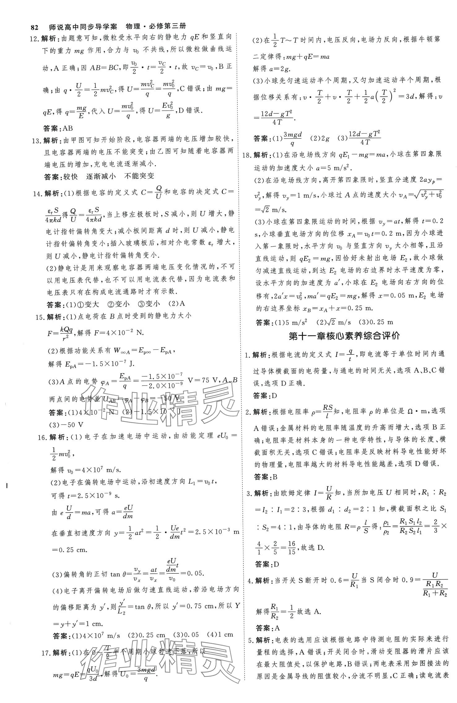 注:目前有些书本章节名称可能整理的还不是很完善,但都是按照顺序排列的,请同学们按照顺序仔细查找。练习册 2024年师说高中物理必修第三册 答案主要是用来给同学们做完题方便对答案用的,请勿直接抄袭。