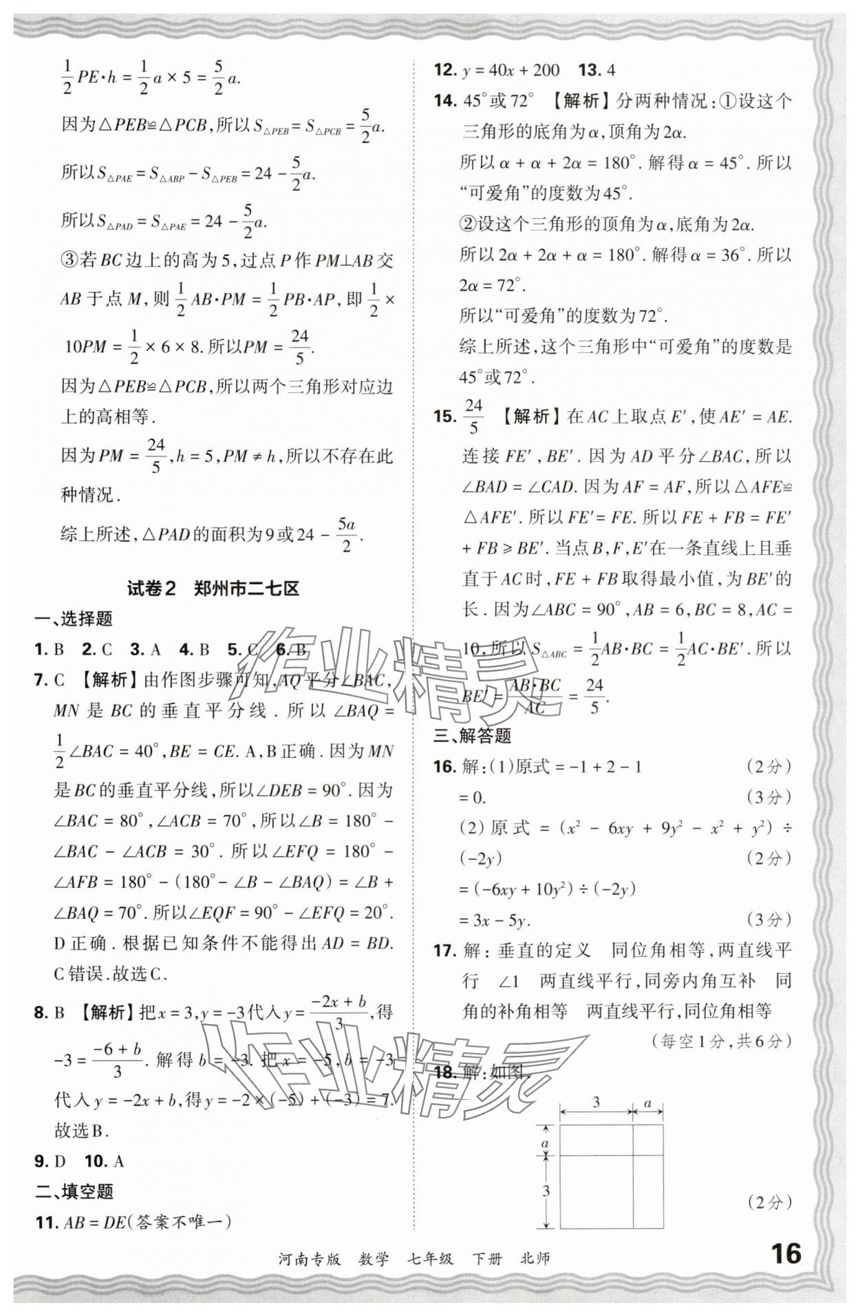 注:目前有些书本章节名称可能整理的还不是很完善,但都是按照顺序排列的,请同学们按照顺序仔细查找。练习册 2024年王朝霞各地期末试卷精选七年级数学下册北师大版河南专版 答案主要是用来给同学们做完题方便对答案用的,请勿直接抄袭。