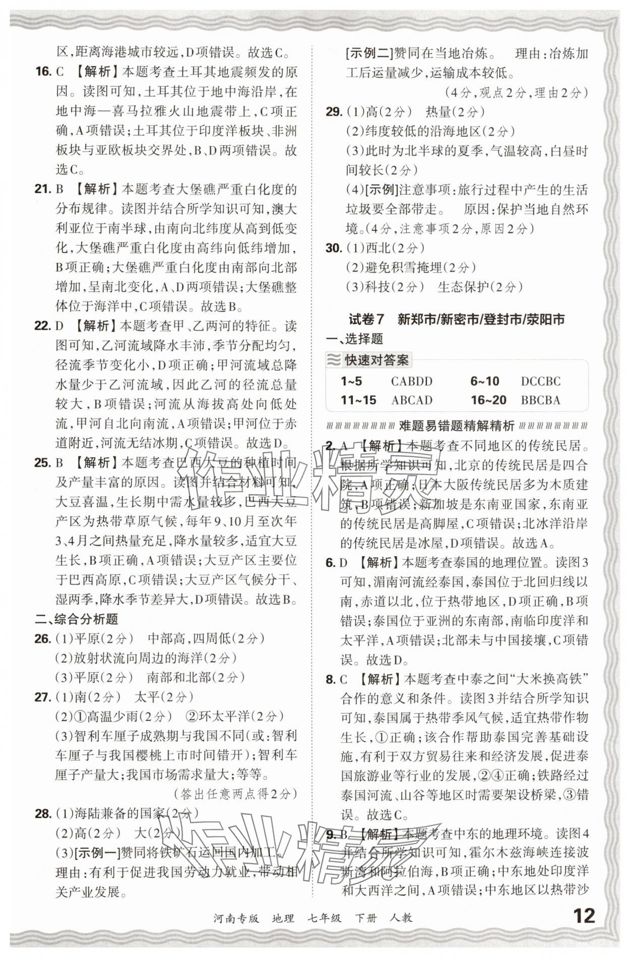 2024年王朝霞各地期末试卷精选七年级地理下册人教版河南专版