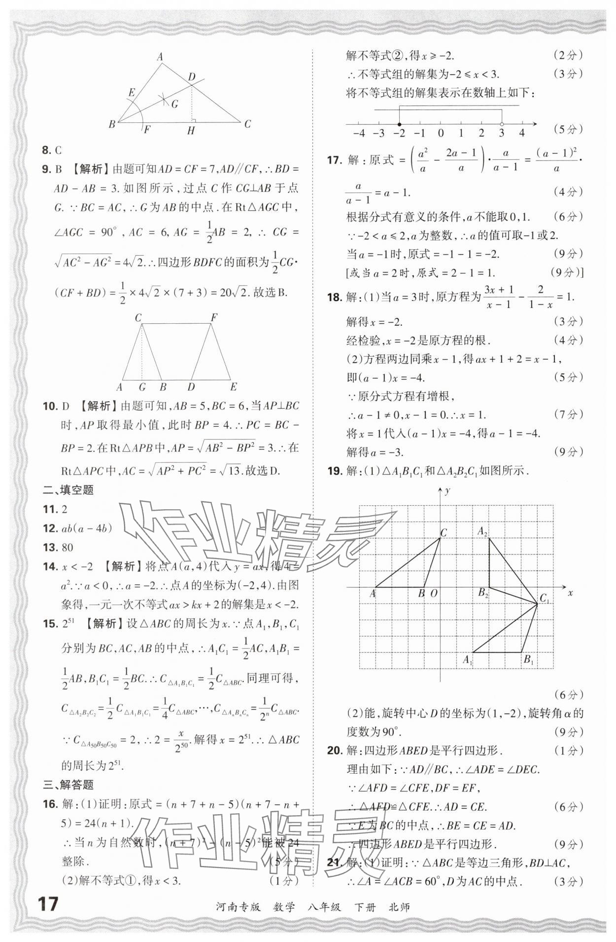注:目前有些书本章节名称可能整理的还不是很完善,但都是按照顺序排列的,请同学们按照顺序仔细查找。练习册 2024年王朝霞各地期末试卷精选八年级数学下册北师大版河南专版 答案主要是用来给同学们做完题方便对答案用的,请勿直接抄袭。
