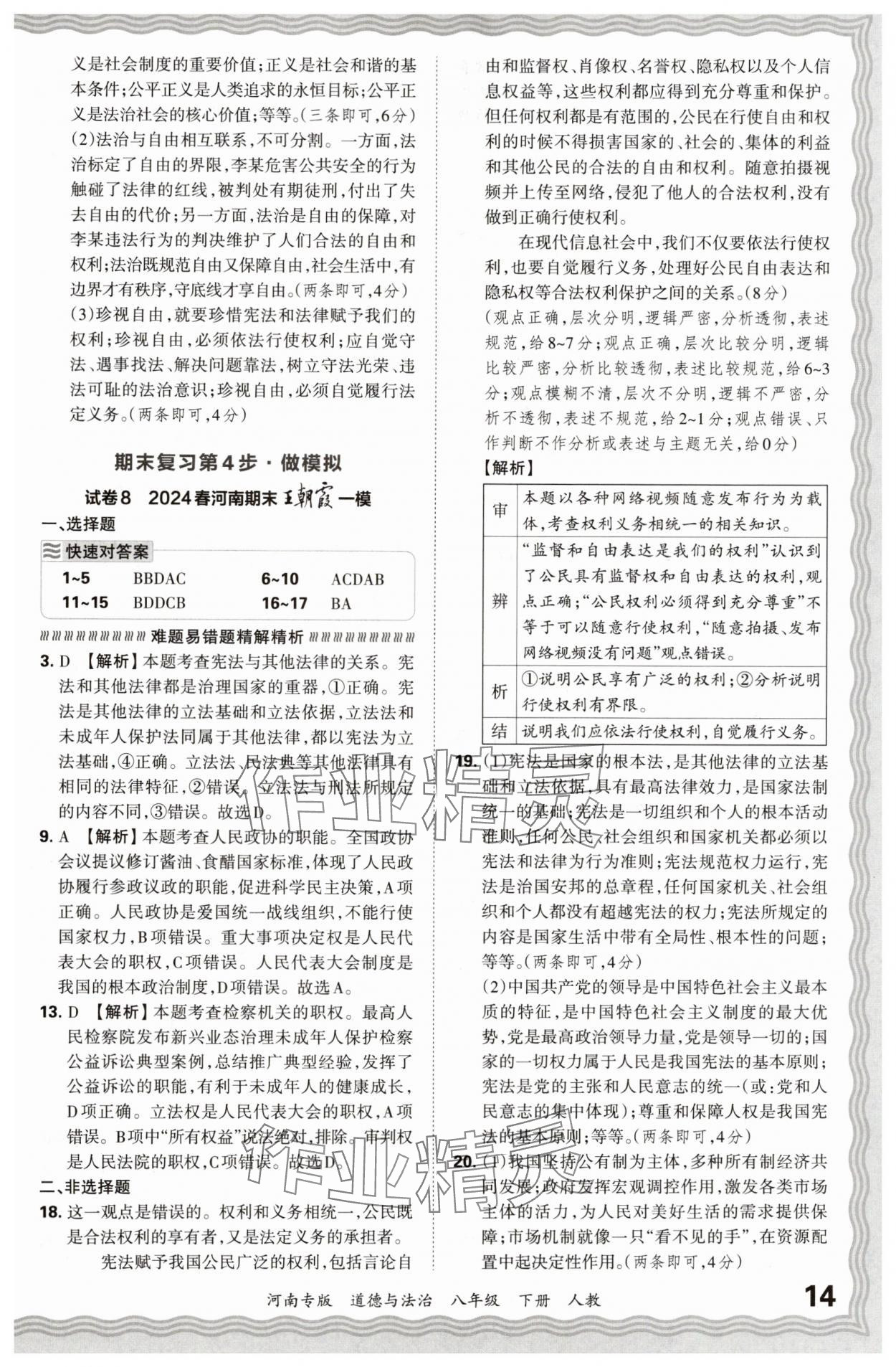 注:目前有些书本章节名称可能整理的还不是很完善,但都是按照顺序排列的,请同学们按照顺序仔细查找。练习册 2024年王朝霞各地期末试卷精选八年级道德与法治下册人教版河南专版 答案主要是用来给同学们做完题方便对答案用的,请勿直接抄袭。