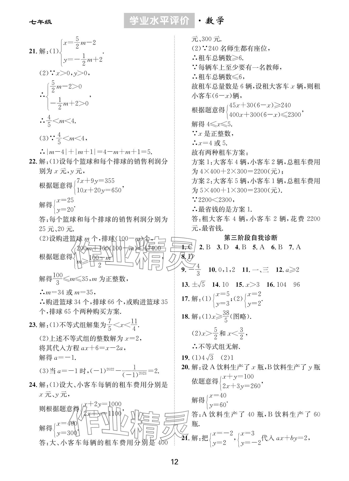注:目前有些书本章节名称可能整理的还不是很完善,但都是按照顺序排列的,请同学们按照顺序仔细查找。练习册 2024年学业水平评价七年级数学下册人教版 答案主要是用来给同学们做完题方便对答案用的,请勿直接抄袭。